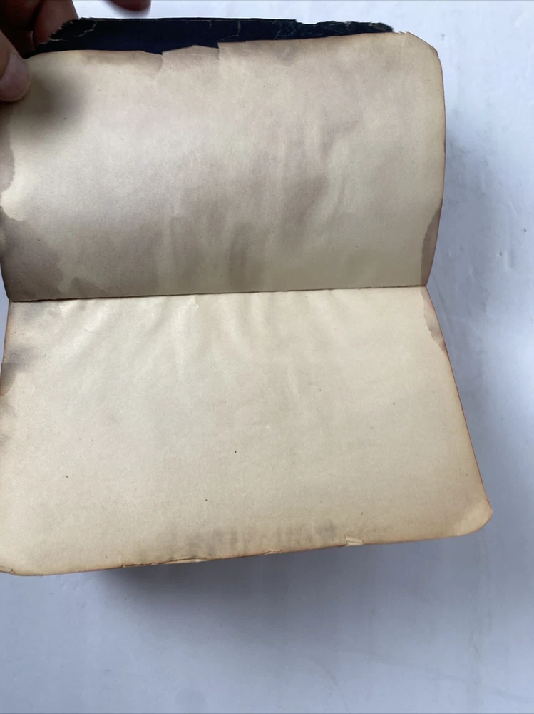 Has blemishes as shown in pictures. I attempted to show the largest blemishes and tried to show the general condition All pages seem to be present Has scent of a vintage book that has been in storage for decades Approximately 7” x 5”