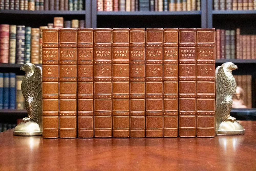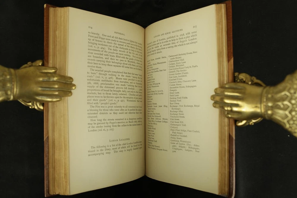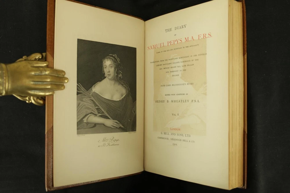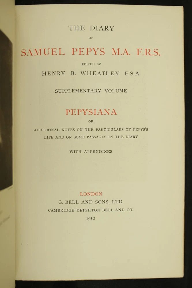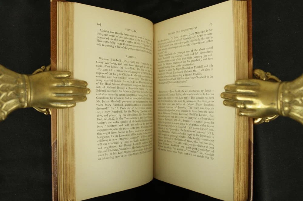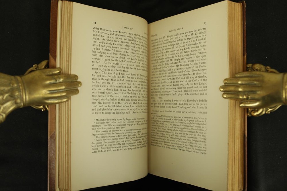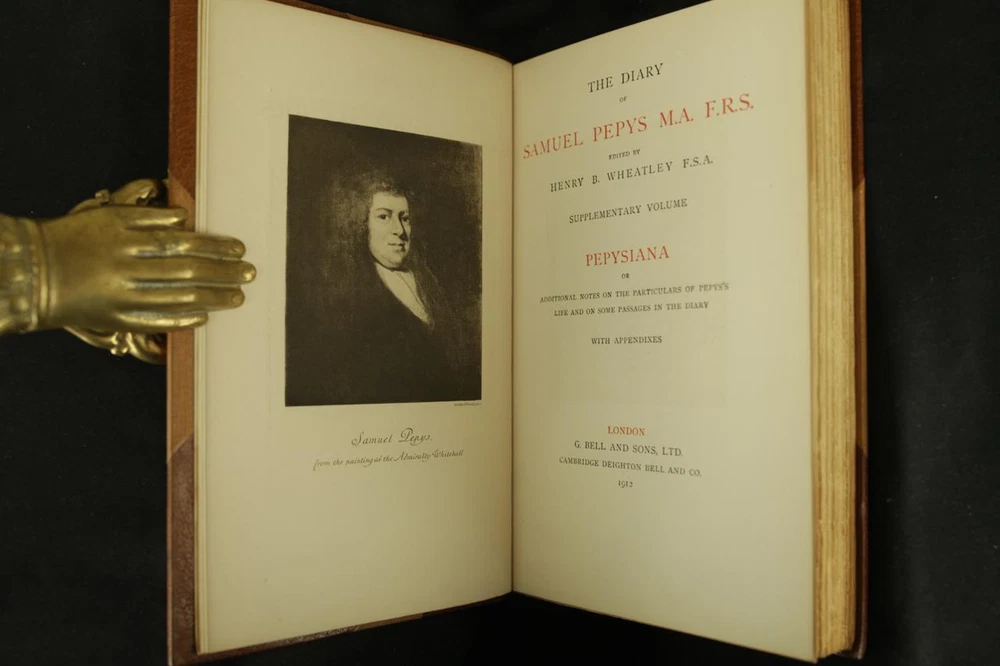 THIS COMPLETE TEN VOLUME SET IS IN NEAR FINE CONDITION BEAUTIFULLY BOUND BY BICKERS & SON IN 3/4 CRUSHED MOROCCO WITH BRIGHT GILT RULE TO BOARDS, SIX COMPARTMENTS AND FIVE RAISED BANDS TO SPINE WITH BRIGHT GILT DETAILS AND TITLE. BINDING AND HINGES ARE VERY GOOD. NO LOOSE OR MISSING PAGES, PAGES ARE BRIGHT AND CLEAN, WITHOUT MARKS OR FOXING. NICELY ILLUSTRATED-FULL PAGE AND FOLD OUTS, BOOKS MEASURE 9"x5.5". 113 YEARS OLD. A BEAUTIFUL SET IN REMARKABLE CONDITION. 1912 The Diary of Samuel Pepys-10 Vols-Fold Outs Leather Bound by Bickers & Son 1912 The Diary of Samuel Pepys-10 Vols-Fold Outs Leather Bound by Bickers & Son Description THIS COMPLETE TEN VOLUME SET IS IN NEAR FINE CONDITION BEAUTIFULLY BOUND BY BICKERS & SON IN 3/4 CRUSHED MOROCCO WITH BRIGHT GILT RULE TO BOARDS, SIX COMPARTMENTS AND FIVE RAISED BANDS TO SPINE WITH BRIGHT GILT DETAILS AND TITLE. BINDING AND HINGES ARE VERY GOOD. NO LOOSE OR MISSING PAGES, PAGES ARE BRIGHT AND CLEAN, WITHOUT MARKS OR FOXING. NICELY ILLUSTRATED-FULL PAGE AND FOLD OUTS, BOOKS MEASURE 9"x5.5". 113 YEARS OLD. A BEAUTIFUL SET IN REMARKABLE CONDITION. !!!CLICK HERE!!! Visit My eBay Store TO SEE ALL THE BOOKS WE HAVE FOR SALE!!! IF YOU LIKE WHAT YOU SEE THAN SAVE US TO YOUR FAVORITES BY CLICKING HERE. Add me to your Favorite Sellers RARE ANTIQUARIAN BOOKS CAN BE FRAGILE AND NEED TO BE HANDLED WITH CARE. About us: Reagan's Rare Books is a purveyor of Antiquarian books primarily from the 18th and 19th centuries. We love antique books! We search all over the country for the finest rare books, looking for those with beautiful bindings and in great condition so that we can offer you, the customer, a truly rare one of a kind collectible. Paypal Preferred. Please make payment arrangements within 48 hours of winning your auction. We reserve the right to re-list items not paid within 5 days. Shipping *To Insure That Your Package arrives without any Problems , Please Double Check to Make Sure That The Address You Have Selected in eBay Is Correct. All books are carefully bubble wrapped and packed in a box with adequate packing peanuts to prevent any damage during shipment. All books are shipped with delivery confirmation and tracking. Books over $75.00 are automatically insured. RETURNS 100% Satisfaction Guaranteed. Returns accepted for any reason within 30 days of receipt. PLEASE CHECK MY OTHER LISTINGS. POSTING NEW RARE BOOKS DAILY/WEEKLY. Get images that make Supersized seem small. Showcase your items with Auctiva's Listing Templates! THE simple solution for eBay sellers. Track Page Views With Auctiva's Counter