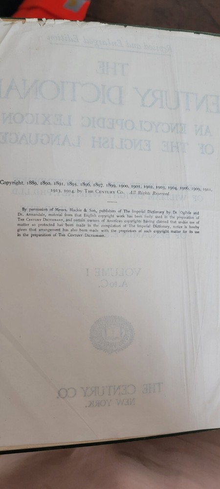 1914 The Century Dictionary and Encyclopedia - Revised and Enlarged Edition Lexicon of the English Language Complete Set - Volumes I - V (1-5, A-Z) Binding in Poor Shape, but all pages are in great condition.