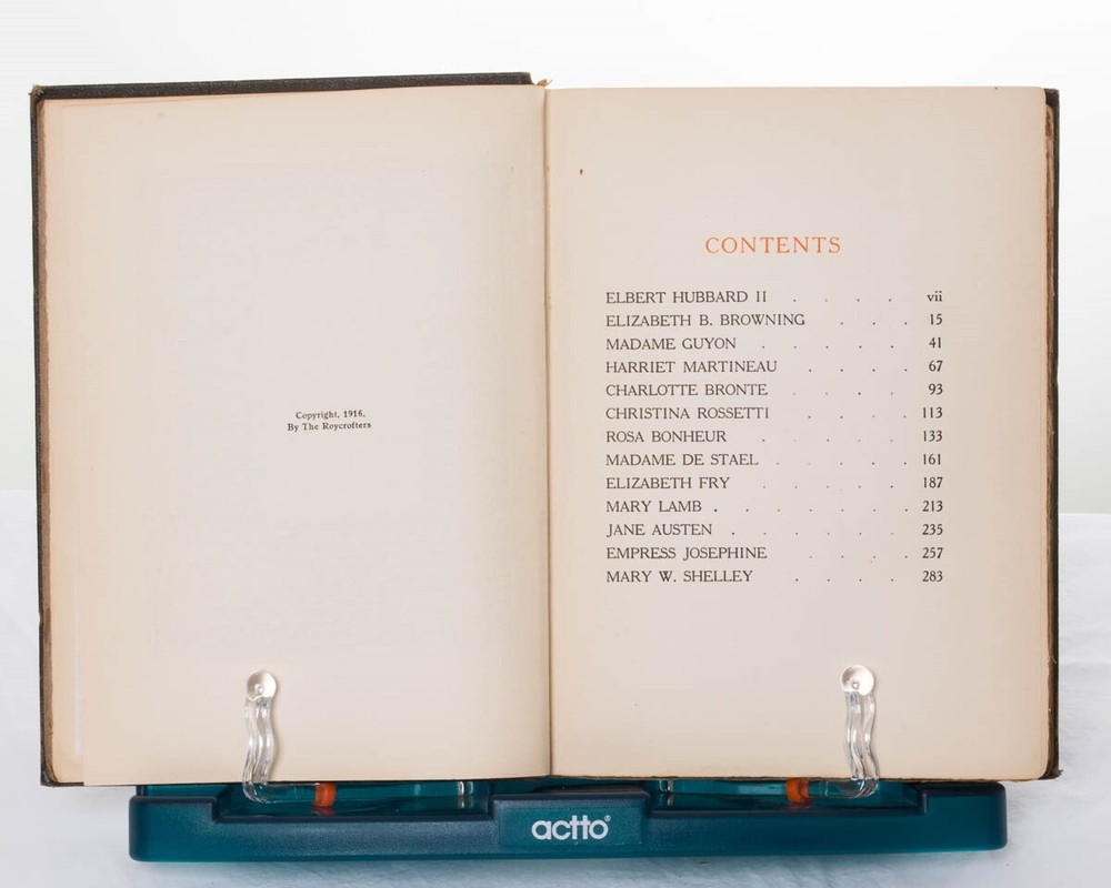 Elbert Hubbard II, Little Journeys to the Homes of the Great Volume II (2) of XII (12): Famous Women First (1st) Leather-bound Memorial Edition Twelve Portrait Plates, Rough Edges, Gilt Top First Printing by the Roycrafters, New York William H. Wide & Co. Publishing, New York, 1916 Good Antique Condition