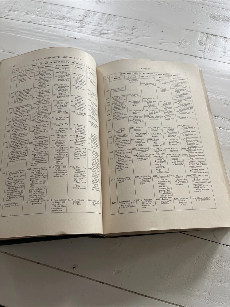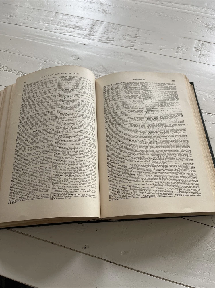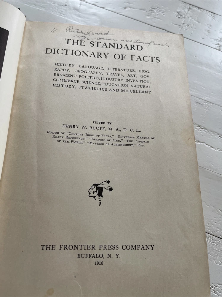 The binding is coming loose. Other than that, the book is in overall good condition. Please see pictures for overall condition. 1916 THE STANDARD DICTIONARY OF FACTS Frontier Press Co., Leather Binding.