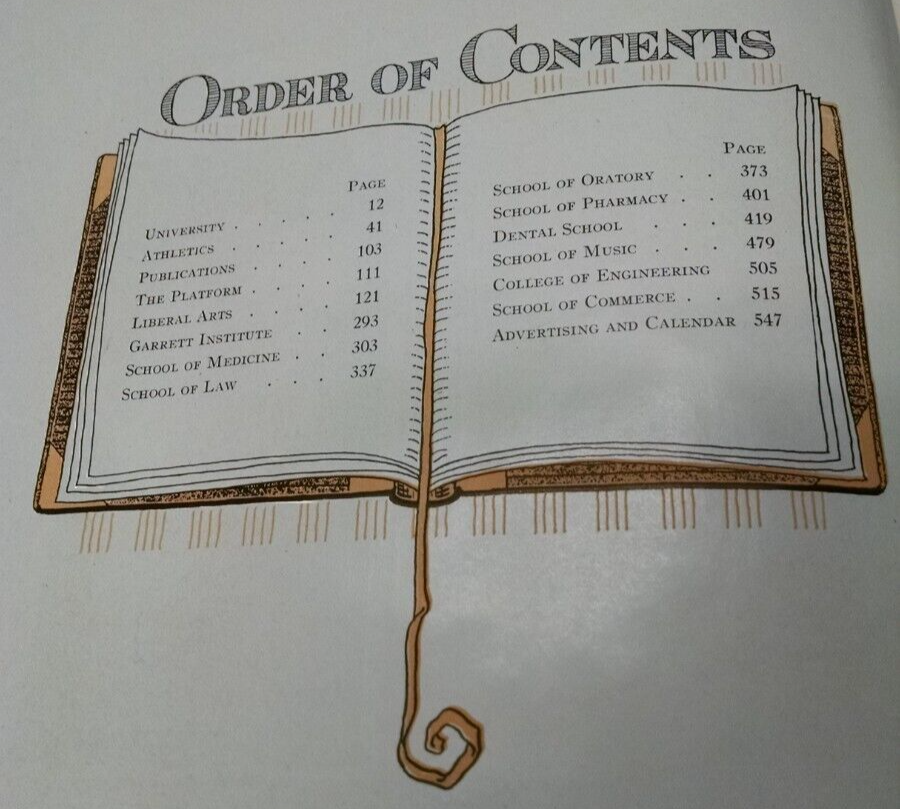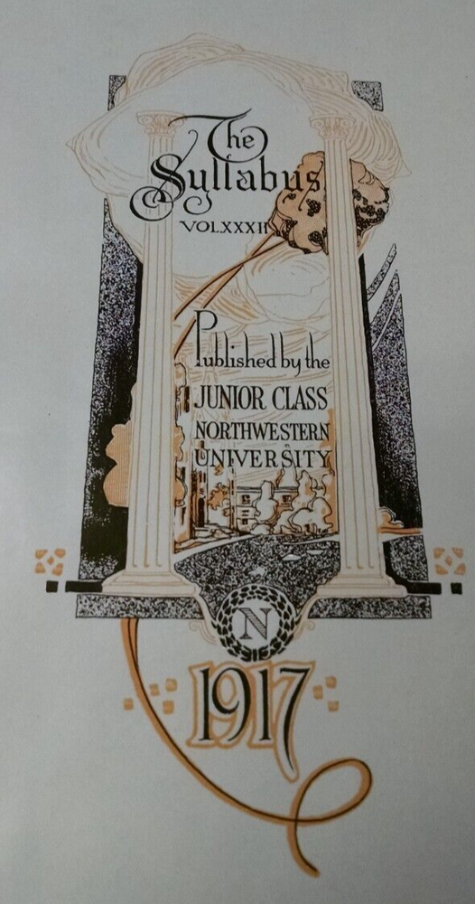 This 1917 Northwestern University Syllabus Yearbook is a must-have for any collector or enthusiast of Americana. The beautiful leather binding and illustrations by Northwestern University students make it a unique and valuable addition to any collection. The yearbook provides a fascinating glimpse into the lives of Northwestern University students in 1916, including information on courses, extracurricular activities, and campus life. This original, first edition yearbook has a stamp inside front cover of original owner.