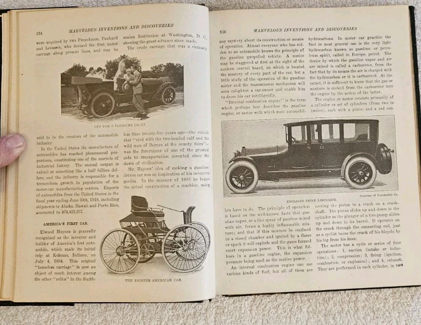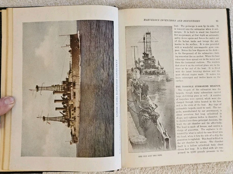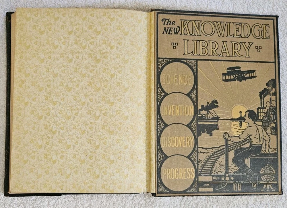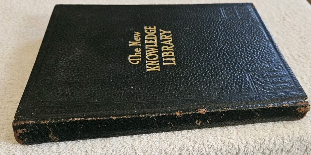 Original 1919 Special Leather Bound Issue of The New Knowledge Library 7" x 9.5" Tall Over 100 Very Good and Unusual Photos and Illustrations A Pictorial Library of Education Inspiration and Self-Help Note: Pages numbers in this publication are unusual in that one page may have 88 on one side and 90 on the reverse. Editors Emory Adams Allen, Ferdinand E. Cary, Thomas H. Russell. Bureau of Home and School Education Cincinnati, Ohio Inventions, Industrial Development, Facts about Great Nations, Government, Science, Invention, Discovery, Progress 1919