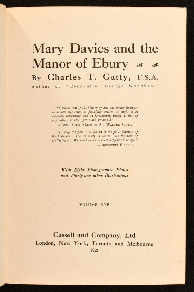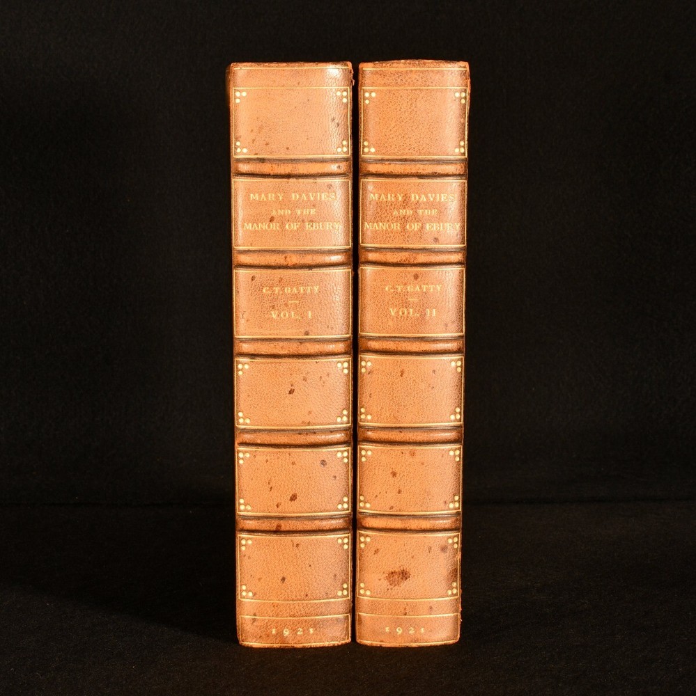 Click here to see our other books! Mary Davies and the Manor of Ebury Charles T. Gatty 1921 Cassell & Company, Limited : London 9" by 6" ix, 294; viii, 285pp. SUMMARY A smartly bound first edition of this illustrated account of the life of Mary Davies. First Edition,Illustrated,Leather Binding,Original Binding,Publishers' Original Binding Overall Condition: Very Good This book weighs 2 KG when packed UK Postage: £ 3.99 US Postage: £ 29.99 EU Postage : £ 21.99 European Postage: £ 23.99 Asia Postage: £ 37.99 Worldwide Postage: £ 38.99 DESCRIPTION Complete in two volumes. First edition. Volume one is illustrated with a frontispiece and eighteen plates, with the odd in-text images. Volume two is illustrated with a frontispiece, twelve plates, eight black-and-white photographic plates, and one folding map to the rear. Collated complete. Born in January 1665 to the scrivener Alexander Davies, who died in the Great Plague, Mary inherited a plot of land while still a baby. This was the Manor of Ebury, 300 acres of farmland to the west of London that stretched from the Thames to what is now Oxford Street. Deemed desirable for her vast wealth, the scandal of her marriages defined not only the tragic fate of the estate, but Mary too. Written by Charles Tindal Gatty, a British antiquary, musician, author, and lecturer. Bound by Hatchards. CONDITION Bound in full blue crushed morocco. Externally, smart with rubbing to the extremities. Fading to the spine and board edges. Internally, firmly bound. Front hinge starting but firm to volume one. Pages are very bright and clean with the odd spot. Light spotting and age toning to the endpapers. Contemporary ink inscription to the front endpaper of volume one. Bound by Hatchards. Overall Condition: Very Good GLOSSARY OF TERMS Overall Condition (Dustwrapper condition rating is shown after that for the book itself, where a dustwrapper is present) Fine - Very well preserved copy showing very little wear Very Good Indeed - Only one or two minor faults, really a very attractive copy Very Good - Quite a wide term meaning no major faults but probably several smaller ones often expected given the age of the book, but still a respectable copy Good - Meaning not very good. Some more serious faults as will be described in the condition report under 'condition' Good Only - Meaning one or more faults that could really do with repair Fair - As with good only above but with other faults leaving a compromised copy even after repair Poor - Really bad and possibly seriously incomplete. We only sell books in this condition where their rarity or value makes them attractive none the less. Major defects will be described. GUARANTEE We offer a full money back guarantee on our descriptions. Please ask for details and conditions. We prefer PAYPAL. If you pay via PAYPAL we will post the item off the same or the next working day with the postage you have selected. Please note we cannot accept USD cheques