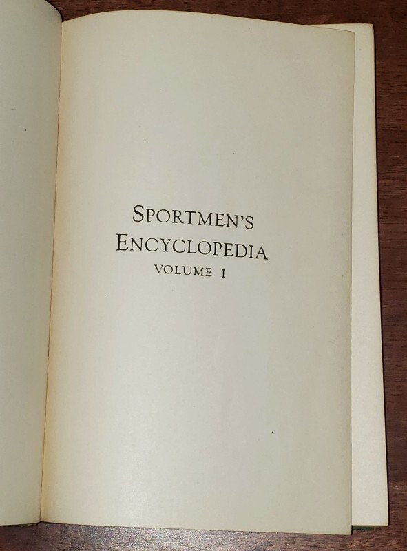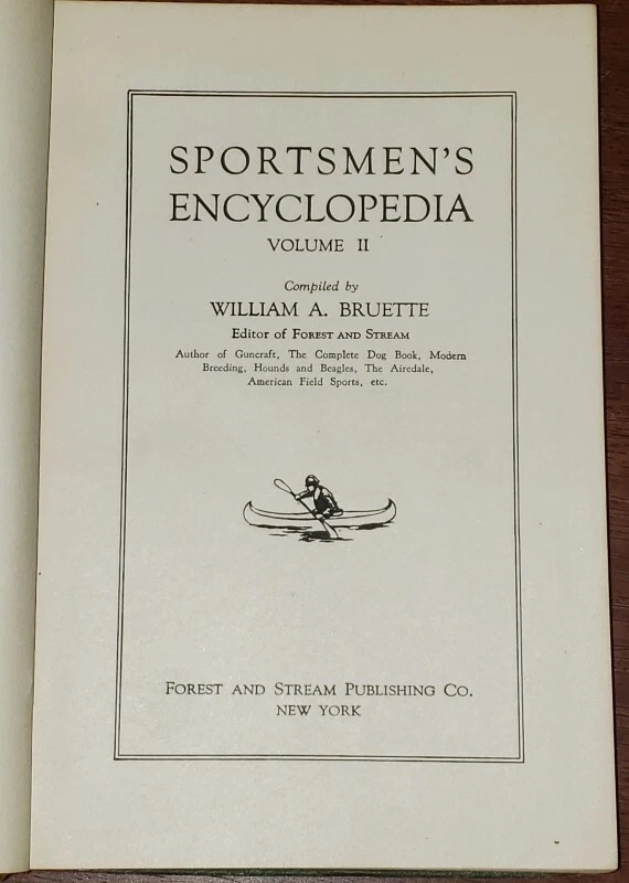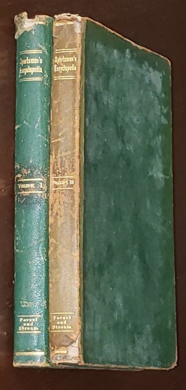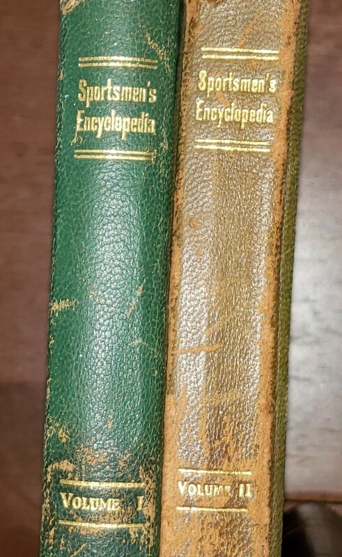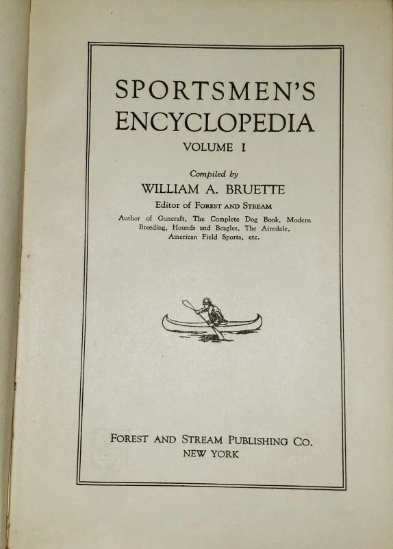 SPORTMEN'S ENCYCLOPEDIA Volume 1 & II by William A. Bruette 1923 Forest and Stream - Leather/Leatherette Bound with Gilt Lettering - 1st Printing/Edition Very Good Condition. Intact and complete with no loose pages.