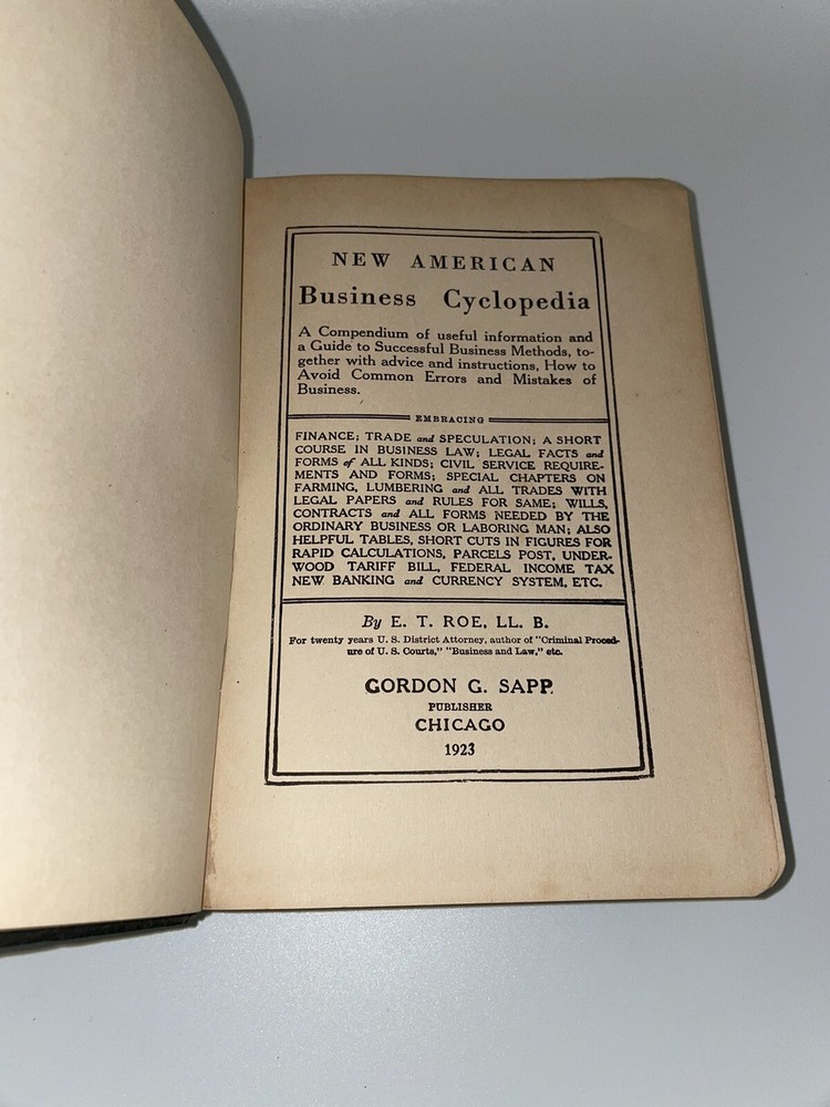 1923 New American Business Cyclopedia leather bound book. Used good condition, especially for its age. A...
