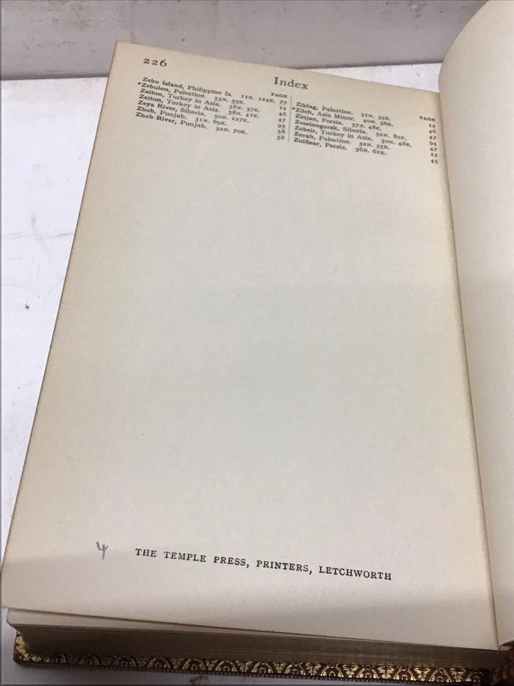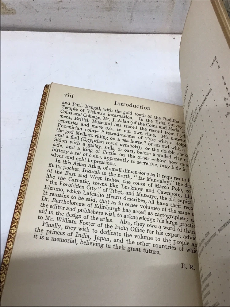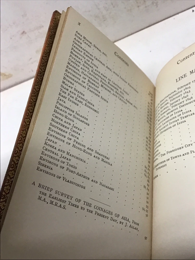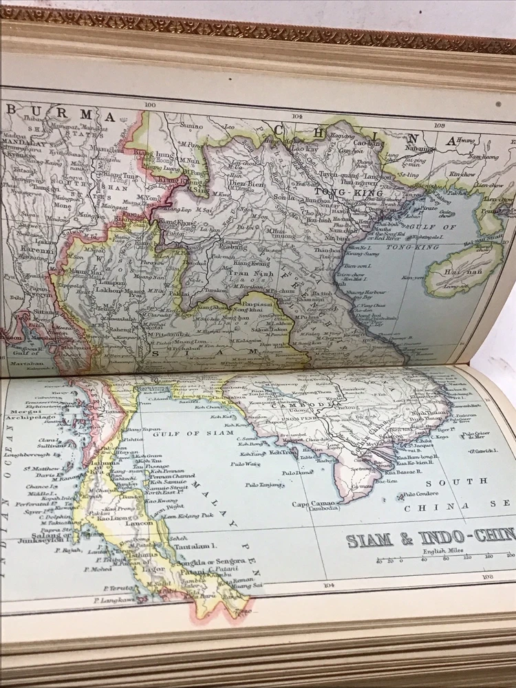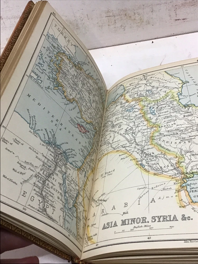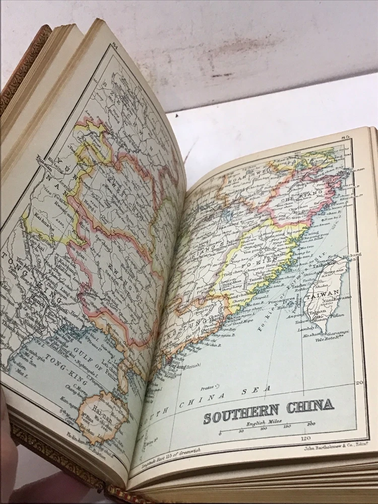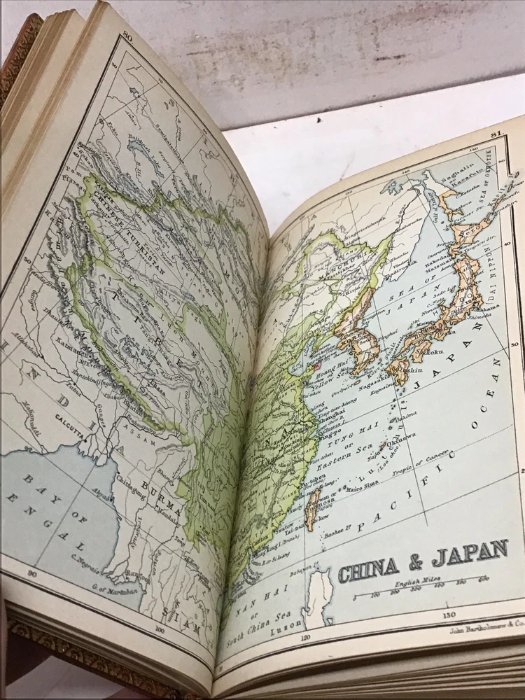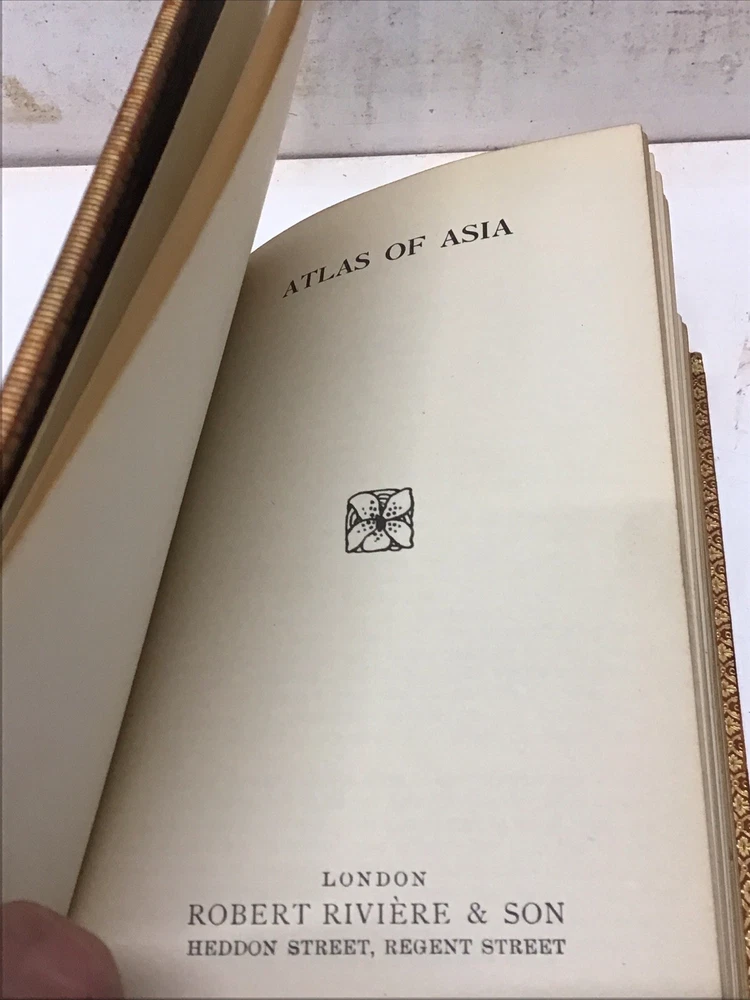 The 1925 Leather Atlas of Asia published in London by Robert Rivière & Son is a rare and valuable collectible book that provides a comprehensive reference guide to the region of Asia. The beautifully crafted leather binding adds to its aesthetic appeal, while the detailed illustrations and maps enhance its functionality as an informative tool for exploration and reference. This antique atlas, printed in English and published by Robert Rivière & Son in the United Kingdom, is a unique piece of history that showcases the craftsmanship and knowledge of the time period. 1925 The Reference Library- Atlas of Asia published in London by Robert Rivière & Son Size 4.5” x 6.5/8” 226 pages Has no copyright date in book and is a rarer book as at time of listing I found not locate this book. Has some wear being 100 years old as seen in pictures and front cover has been supported by tape and has some stiffness and is secure.(See Photos)Has Marbleized endpapers and retains gold borders. Nice clean copy with no writing in book. See table of contents for maps which is pictured. See our other beautiful books Keep in mind the shipping price also covers handling fees, packaging materials & time, not just postage. See our eBay store for thousands of our other items. B16