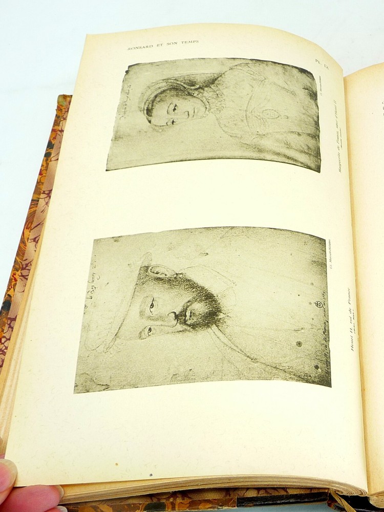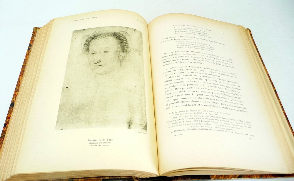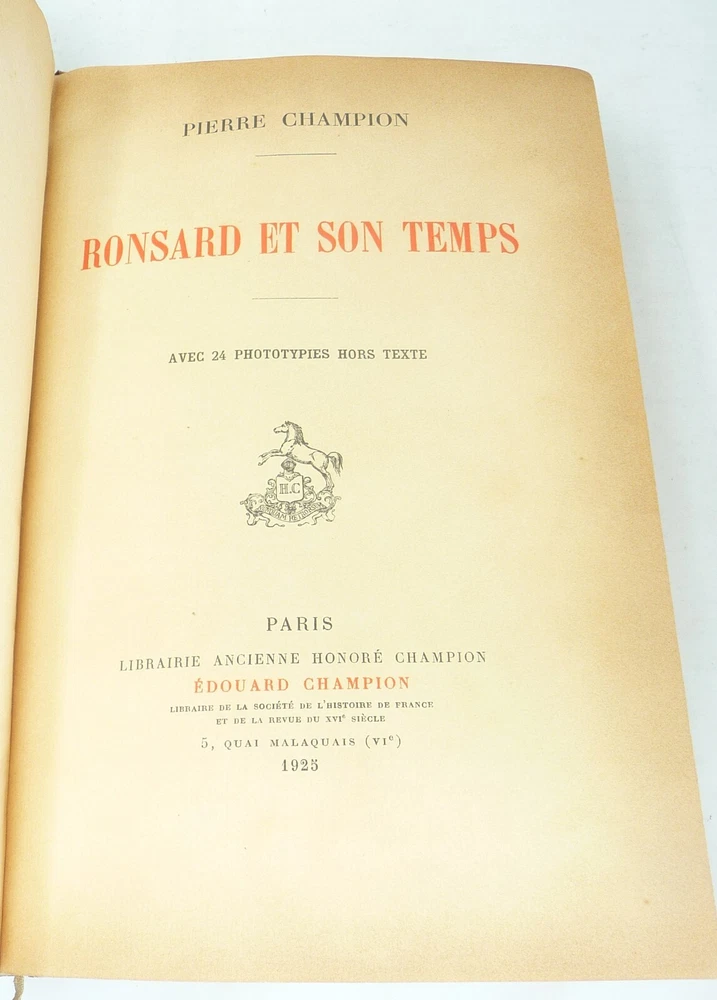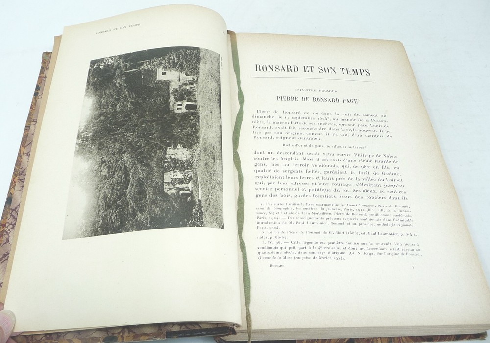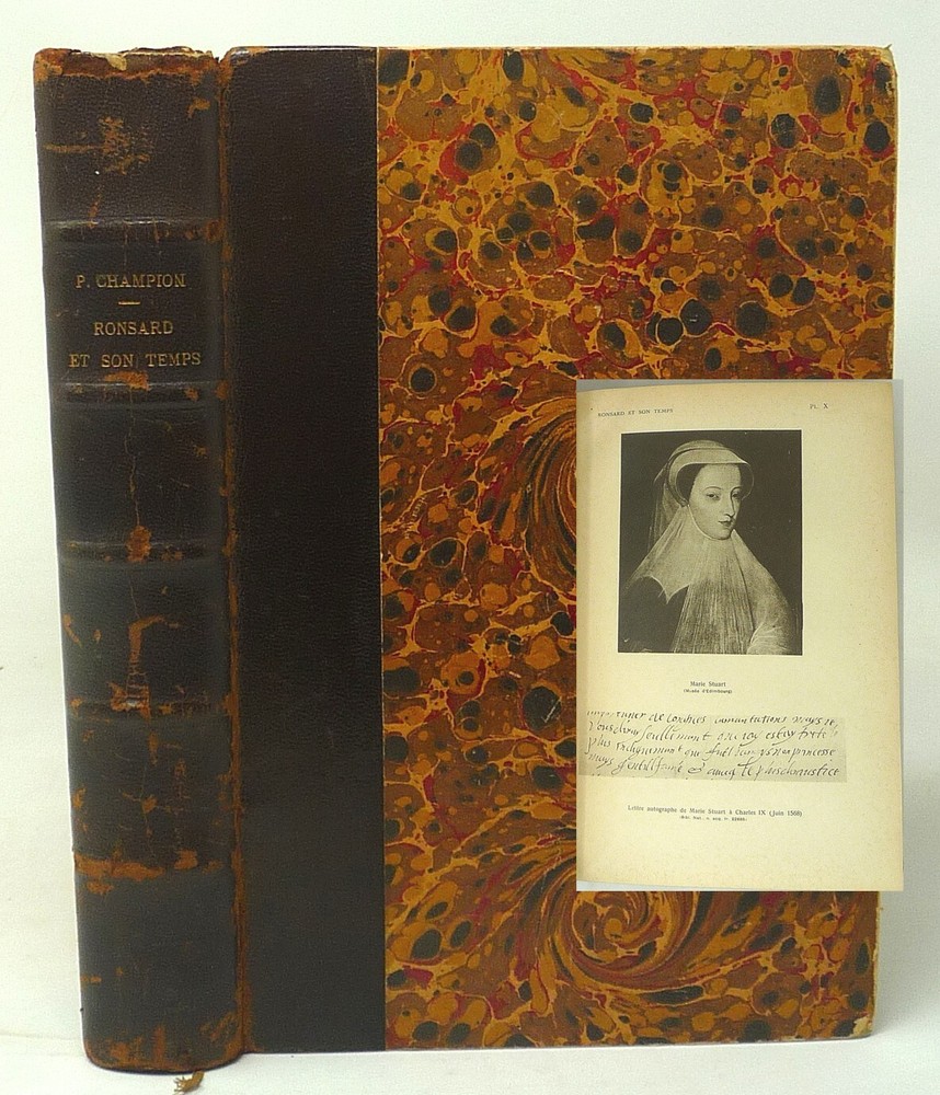 BONSARD ET SON TEMPS, 1925 Bonsard et Son Temps. Champion, Pierre. Paris: Librairie Ancienne Honore Champion, 1925. The French painter and his life and times. 24 full page plates. Hardcover, half leather and marbled boards. Attached ribbon bookmark. Five raised bands and gilt titles on the spine. Very good, light nicks to leather top and bottom of spine. Presents well. 503 pages.
