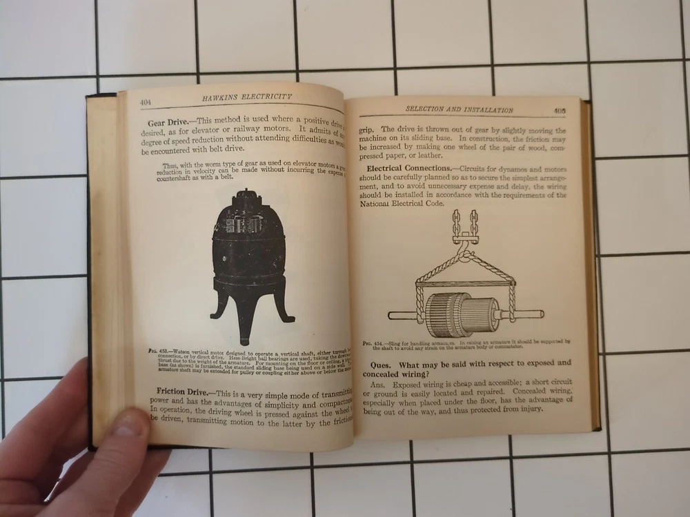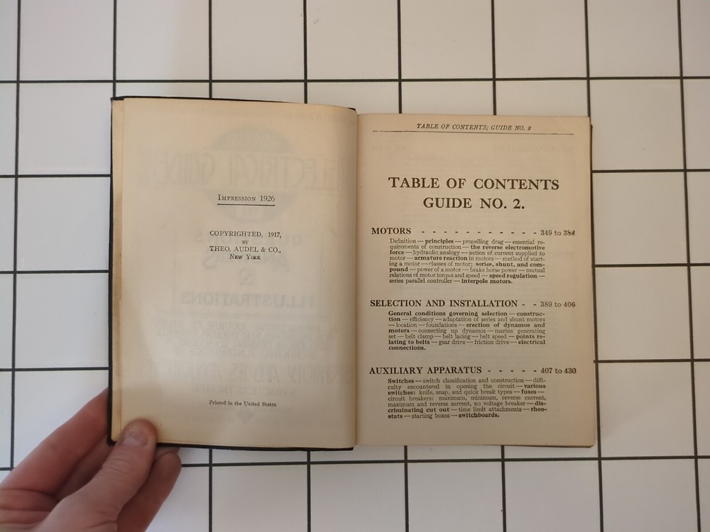 Hawkins Electrical Guide Number 2 Published by Theo. Audel & Co Leather soft cover, Gold edges 1926 Condition: This book is in good vintage condition. There is minor wear notable on the Leather softcover/edges/spine. The cover page in has been torn. The text is clean and there are no notable markings/highlighting within the text. Please see all photos of wear/condition before purchasing. Please ask any and all questions before purchasing! Your purchase from our small eBay store helps support our ability to homeschool and provide needed services for our disabled children. Thank you in advance for your purchase!