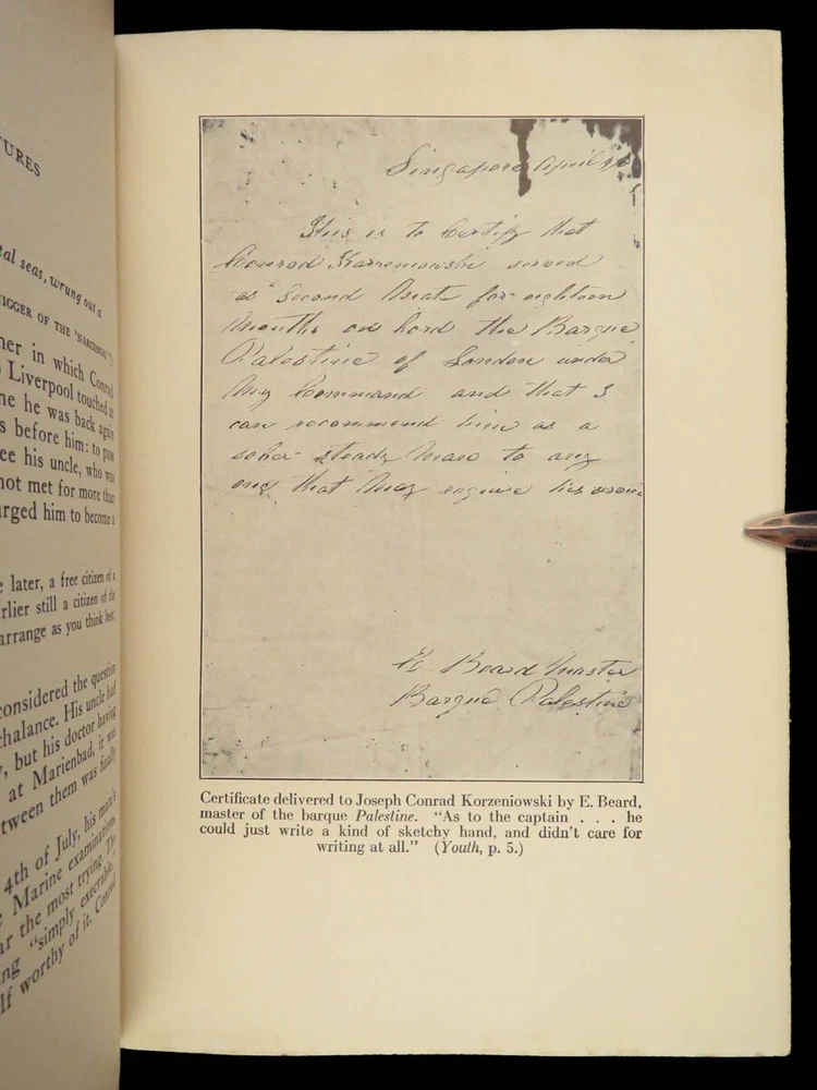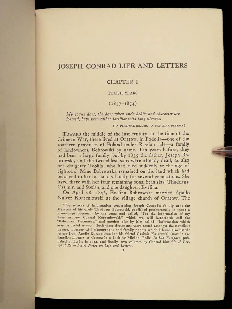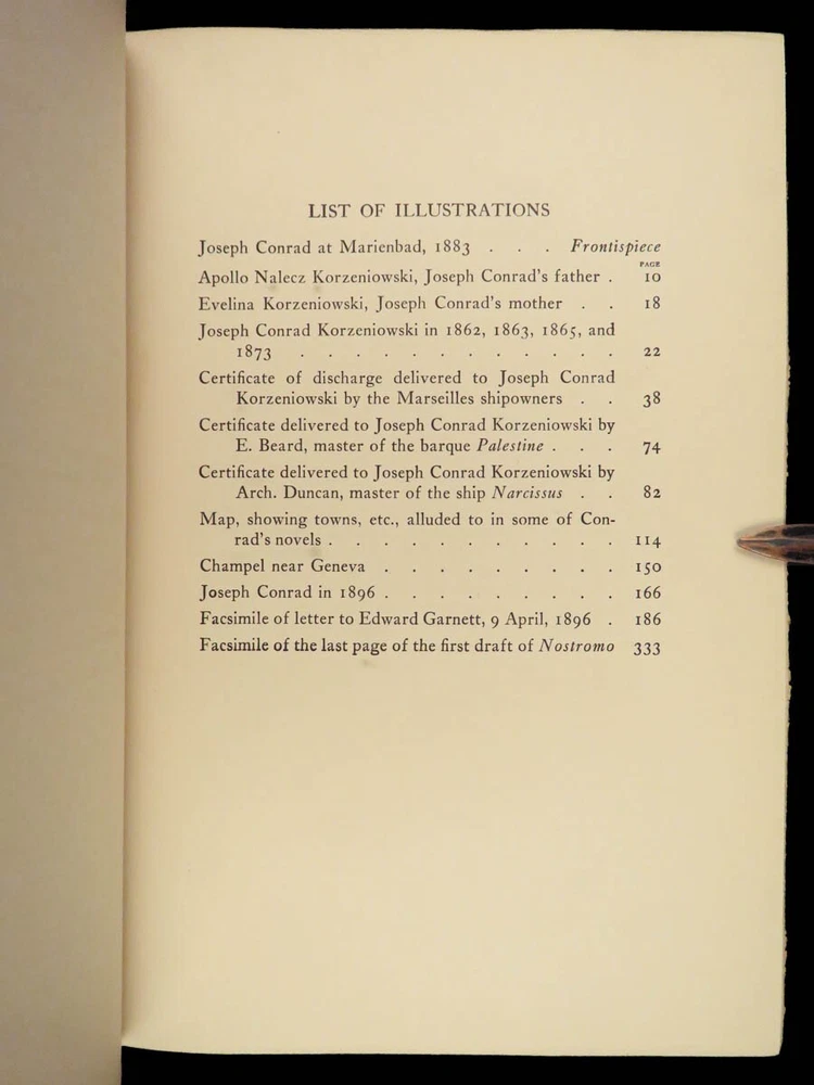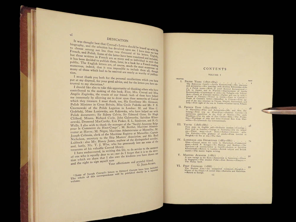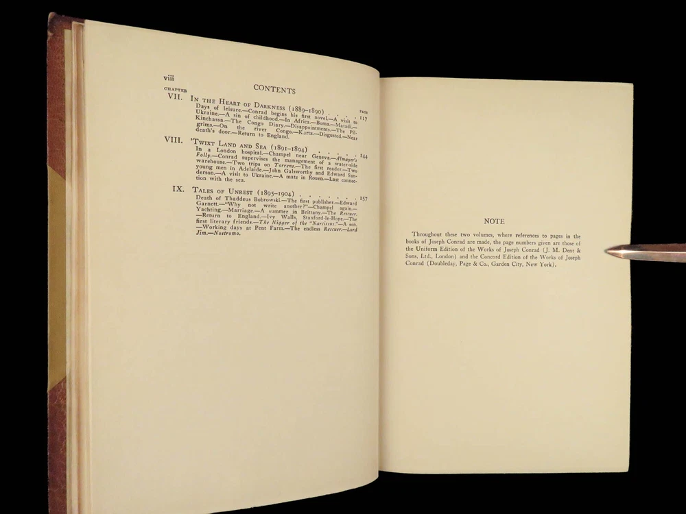 1927 Joseph Conrad 1 ed Life & Letters Novels Poland Lord Jim FINE BINDING 2v Joseph Conrad was a 19 th -century Polish writer known for his English novels even though he was not fluent in English. His many letters give a detailed glimpse into his life while living in all over Europe – Poland, France, England, Geneva – as well as insight to his most influential novels like “ Lord Jim ” and “ The Ni**er of the Narcissus ”. This stunning 1927 two-volume set of the letters of Joseph Conrad was published in New York by Doubleday and features an exquisite brown-leather binding. Note the inclusion of maps, photographs of handwritten letters, and portrait photographs all collected and edited by G. Jean-Aubry. Item number: #25394 Price: $499 CONRAD, Joseph Joseph Conrad life and letters New York: Doubleday, Page, 1927. First edition. Details : · Collation: Complete with all pages; 2 volumes o Vol. I – viii, [4], 339, [1] o Vol. II – v, [5], 376 o 18 plates and facsimile letters throughout · Language: English · Binding: Leather; tight and secure · Size : ~9.5in X 6.75in (24cm x 17cm) Our Guarantee: Very Fast. Very Safe. Free Shipping Worldwide. Customer satisfaction is our priority! Notify us with 7 days of receiving, and we will offer a full refund without reservation! 25394