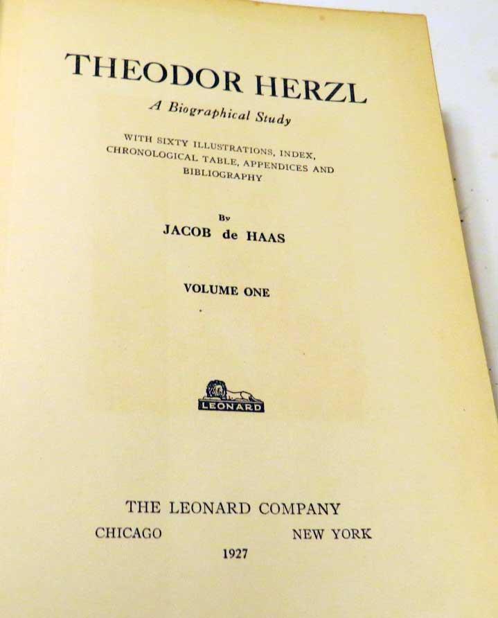 1927 SIGNED Theodor Herzl: A Biographical Study Book by Jacob HAAS #8 Of 340 LE 1927 SIGNED Theodor Herzl: A Biographical Study Book by Jacob HAAS #8 Of 340 LE Description Topdog Presents: Always Interesting Toys and Models! Jacob De Haas authored an authorized biography of Theodor Herzl, titled "Theodor Herzl: A Biographical Study." This comprehensive work, published by Leonard Company in Chicago in 1927, is available in two volumes: Volume I: This volume provides an in-depth exploration of Herzl's life, tracing his background, ideas, and the obstacles he encountered. It offers a vivid portrayal of his role as a leading figure in the Zionist movement. You can access this volume on the Internet Archive. Volume II: The second volume presumably continues the engaging narrative, delving further into Herzl's influence on Jewish history and the evolution of Zionism. Theodor Herzl: Theodor Herzl was a visionary behind modern political Zionism, advocating for the establishment of a Jewish state. His ideas and efforts laid the foundation for the eventual creation of the state of Israel. Jacob De Haas: Jacob De Haas was an author who wrote extensively on Jewish and Zionist issues. He was deeply involved in the Zionist movement and served as Herzl's secretary during the latter years of Herzl's life. De Haas's biography of Herzl provides valuable insights into the life and work of this influential figure. Condition: The book is in good condition, bound in leather which shows some binding wear. Only author-signed editions were bound in leather, making it a luxury issue. Limited Edition: This edition is particularly rare, being one of only 8 out of 340 copies signed by the author. SEE the photos they are part of the description. Flat rate shipping in the US is $14, overseas at cost just ask. Click images to enlarge Payment Payments We add $1 handling fees for every additional item in combined shipping. A total cost of a combined shipping will be calculated based on a combined parcel weight and current USPS shipping rates. Payments are due within 7 days of auctions close, no exceptions We accept PayPal . Shipping Shipping in the US WHEN: We try to ship in 2 days (excluding weekends and holidays). COURIER: USPS International Shipping WHEN: We try to ship the next day (excluding weekends and holidays) COURIER: USPS WHERE: We will ship Worldwide CUSTOMS FEES if any are buyers responsibility. Customs form will show total you paid by PayPal and price for your purchases. We always mark parcels as "used toys". Please do not ask us to low declared value, it defeats the whole idea of shipping fully insured parcel . If you are paying by PayPal parcels with a total value under $750 will be shipped by Registered Mail or First Class International (delivery time up to 4 weeks) or if they weight over 4 pounds will be shipped FULLY INSURED by Priority Mail (delivery time 6-14 days non guaranteed) over $750 will be shipped FULLY INSURED by Express Mail with a signature confirmation (delivery time 4-7 days) The International bidders might want to contact us about shipping cost prior to placing their bids. We will ship to the address listed in your eBay profile under "Shipping Details". It's buyers responsibility to provide a correct shipping address. All returned parcels because of " a wrong shipping address" parcels will be re-sent at the buyer's expense. Please do not ask us to ship to the address not listed in your eBay profile, we will not do it unless we know you from previous transactions. Postal Insurance All domestic parcels with a total over $50 (for Priority mail) and $25 (for First class and Parcel Select) will be insured: $1 per up to $100 of the total (for example if total is $256 , postal insurance will be $3) All International parcels will be insured (no exceptions): $2 per $100 of the total for example if total is $256 , postal insurance will be $6) Lost & Damaged Claims For lost parcels, you must wait for 21 days domestic (US) and 45 days for International shipments. For shipments to Italy , you must wait 60 days before filing. Damage claims can be filed immediately. All claims should be submitted within 90 days from the date of shipment. All International parcels will be insured with U-PIC, please do not file a "not received "claim with PayPal, just contact us to resolve your problem. Terms of Sale Refunds & Returns 100% Satisfaction Guarantee that the item is original and meets the detailed description! Returns to be made within 30 Days of Receipt (including the cases when parcel was hold at PO by buyer's request), after that a sale considered to be final. Buyer pays return shipping cost. If item was damaged in transit you should not return it. You should submit an insurance claim to get a compensation. Please do not send us back broken items. If you need an assistance with your claim please contact us. All returned items should have a tracking number and be fully insured. We reserve right to replace defective item or refund money (less S&H) Pickups We do not do any pickups. As Is If auction marked "AS IS", it means that Liquest Group Inc. shall not be responsible for the correct description, authenticity, genuineness of, or defect in any lots, and makes no warranty in connection therewith. As no warranty is given with any lot, therefore no sale is invalid or avoidable by reason of any fault in any lot or by reason of any lot being incorrectly described (in the ad), and no compensation may be paid for any such fault or error in description or any imperfection not noted. Get images that make Supersized seem small. Showcase your items with Auctiva's Listing Templates! THE simple solution for eBay sellers. Track Page Views With Auctiva's Counter