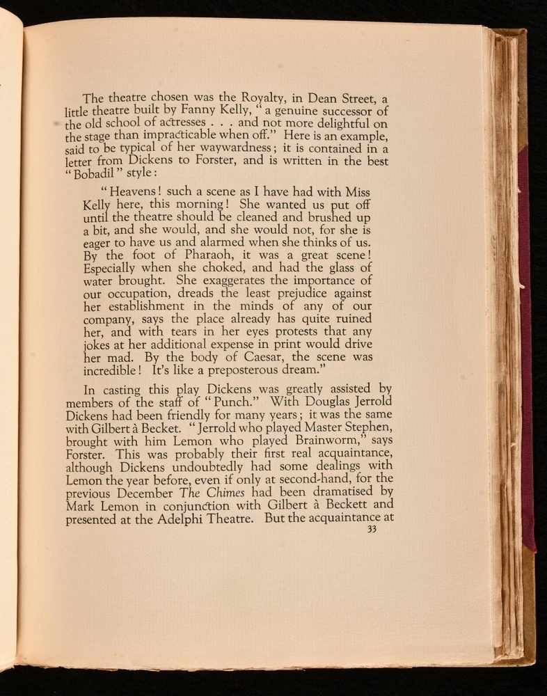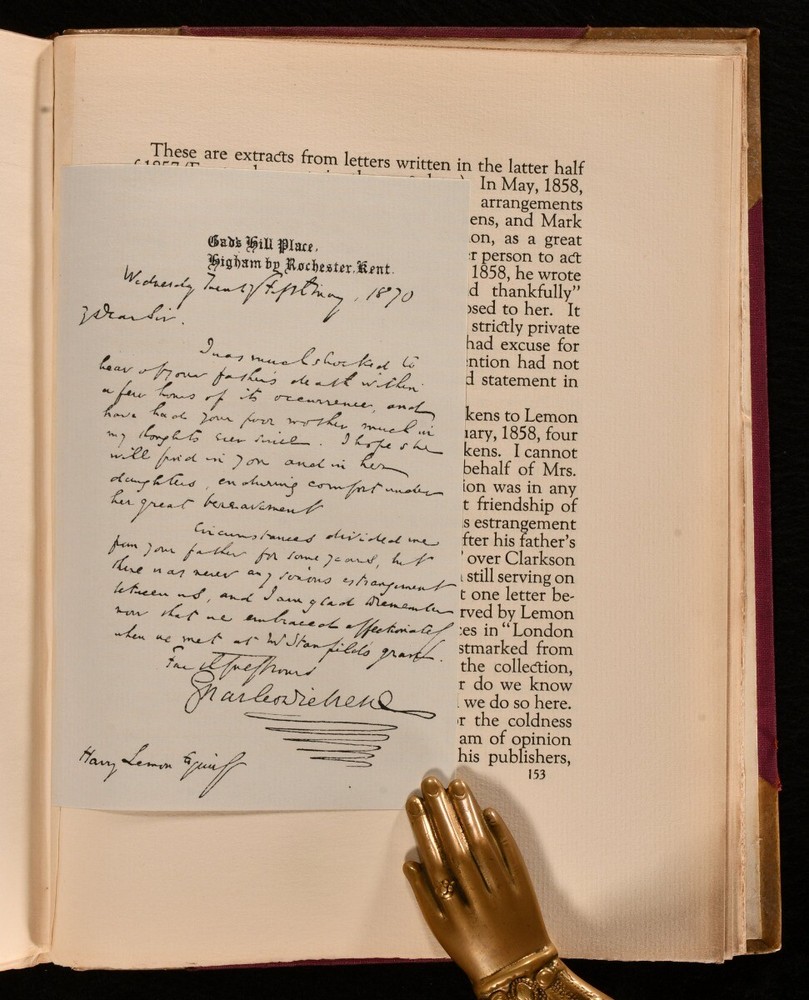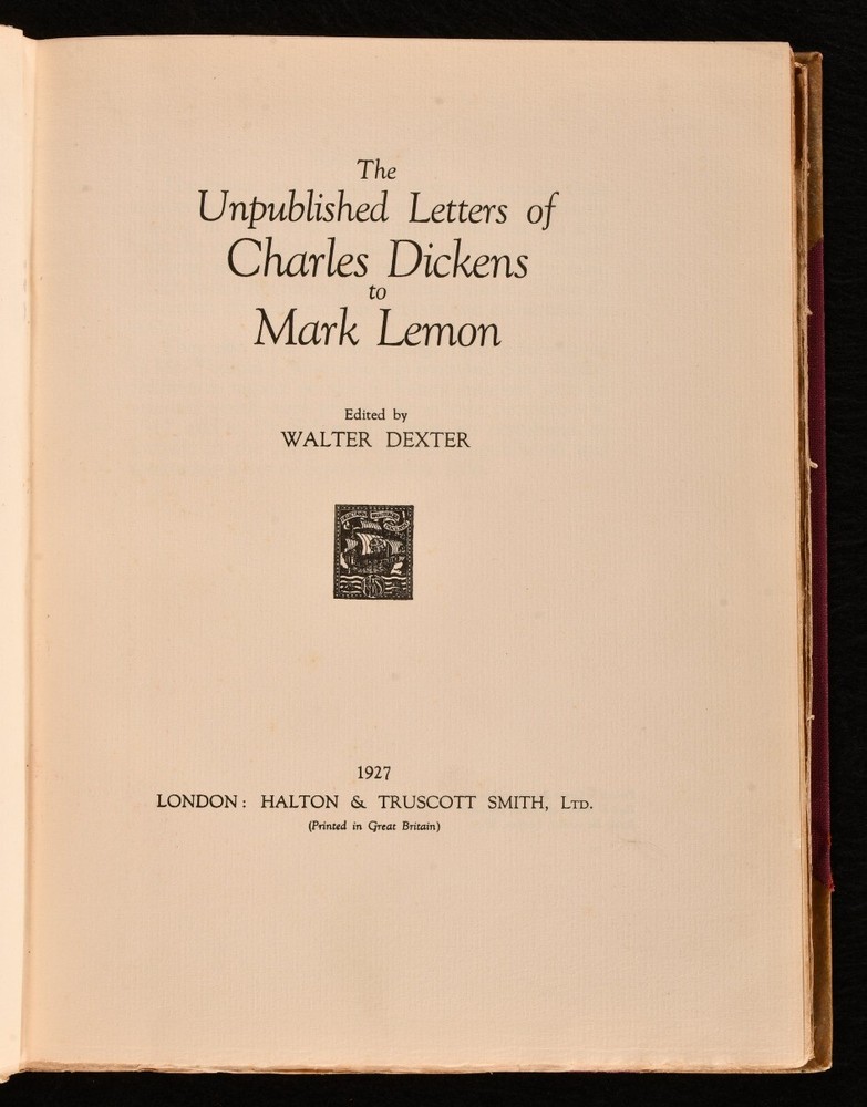 Click here to see our other books! The Unpublished Letters of Charles Dickens to Mark Lemon Charles Dickens; Mark Lemon; Walter Dexter [ed.] 1927 Halton & Truscott Smith : London 10" by 7.5" vii, 165pp. SUMMARY A bright limited edition of Charles Dickens's letters to editor Mark Lemon. Leather Binding,Limited Edition,Publishers' Original Binding Overall Condition: Very Good Indeed This book weighs 0.75 KG when packed UK Postage: £ 3.99 US Postage: £ 19.99 EU Postage : £ 15.99 European Postage: £ 16.99 Asia Postage: £ 21.99 Worldwide Postage: £ 25.99 DESCRIPTION Limited edition, number one-hundred and thirty-eight of five-hundred and twenty five copies printed of Charles Dicken's unpublished letters to Mark Lemon, edited by Walter Dexter. Containing a series of letters illustrative of the author's close and long-lasting friendship with the Punch editor from 1847 to 1870, including four folding letters in facsimile. CONDITION In the original publisher's half vellum binding over cloth covered boards. Externally smart with minor shelf wear, some darkening to vellum as common, general light soiling and few minor marks to spine. Internally, firmly bound. Pages bright and clean. Overall Condition: Very Good Indeed GLOSSARY OF TERMS Overall Condition (Dustwrapper condition rating is shown after that for the book itself, where a dustwrapper is present) Fine - Very well preserved copy showing very little wear Very Good Indeed - Only one or two minor faults, really a very attractive copy Very Good - Quite a wide term meaning no major faults but probably several smaller ones often expected given the age of the book, but still a respectable copy Good - Meaning not very good. Some more serious faults as will be described in the condition report under 'condition' Good Only - Meaning one or more faults that could really do with repair Fair - As with good only above but with other faults leaving a compromised copy even after repair Poor - Really bad and possibly seriously incomplete. We only sell books in this condition where their rarity or value makes them attractive none the less. Major defects will be described. GUARANTEE We offer a full money back guarantee on our descriptions. Please ask for details and conditions. We prefer PAYPAL. If you pay via PAYPAL we will post the item off the same or the next working day with the postage you have selected. Please note we cannot accept USD cheques