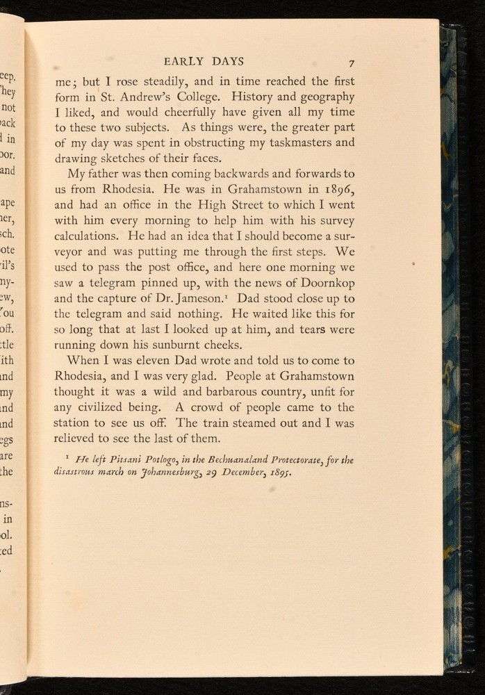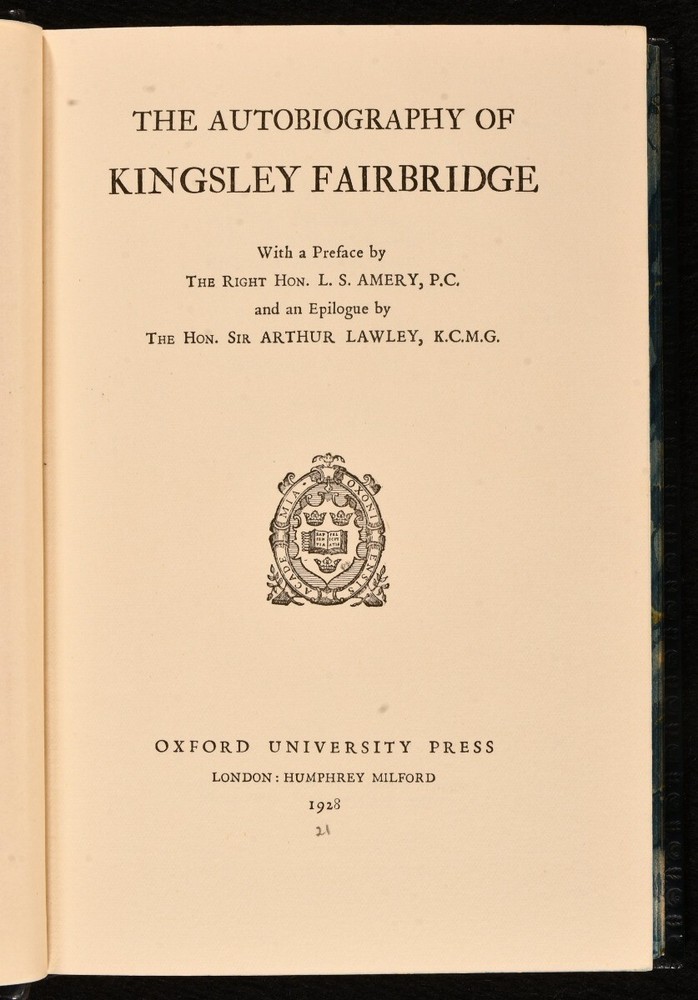 Click here to see our other books! The Autobiography of Kingsley Fairbridge Kingsley Fairbridge; L. S. Amery; Sir Arthur Lawley 1928 Oxford University Press : London 7.5" by 5" ix, 188pp. SUMMARY A smartly bound third impression of this autobiography by the founder of the Fairbridge Schools, Kingsley Fairbridge. Fine Binding,Folding Maps,Leather Binding,Scarce Overall Condition: Near Fine This book weighs 0.75 KG when packed UK Postage: £ 3.99 US Postage: £ 19.99 EU Postage : £ 15.99 European Postage: £ 16.99 Asia Postage: £ 21.99 Worldwide Postage: £ 25.99 DESCRIPTION Third impression, November 1928. First impression, January 1927. Scarce impression. With a portrait frontispiece and a folding map to the rear. Collated complete. The autobiography of Kingsley Fairbridge, the founder of a child emigration scheme from Britain to its colonies and the Fairbridge Schools known initially as the "Society for the Furtherance of Child Emigration to the Colonies." With a preface by Leopold Stennett Amery, a British Conservative politician and journalist. With an epilogue by Sir Arthur Lawley, a British colonial administrator and governor. Bound by Riviere & Son. CONDITION Bound in full deep blue calf. Externally, very smart with light shelf wear and fading to the spine. Internally, firmly bound. Pages are very bright and clean throughout. Bound by Riviere & Son. Overall Condition: Near Fine GLOSSARY OF TERMS Overall Condition (Dustwrapper condition rating is shown after that for the book itself, where a dustwrapper is present) Fine - Very well preserved copy showing very little wear Very Good Indeed - Only one or two minor faults, really a very attractive copy Very Good - Quite a wide term meaning no major faults but probably several smaller ones often expected given the age of the book, but still a respectable copy Good - Meaning not very good. Some more serious faults as will be described in the condition report under 'condition' Good Only - Meaning one or more faults that could really do with repair Fair - As with good only above but with other faults leaving a compromised copy even after repair Poor - Really bad and possibly seriously incomplete. We only sell books in this condition where their rarity or value makes them attractive none the less. Major defects will be described. GUARANTEE We offer a full money back guarantee on our descriptions. Please ask for details and conditions. We prefer PAYPAL. If you pay via PAYPAL we will post the item off the same or the next working day with the postage you have selected. Please note we cannot accept USD cheques