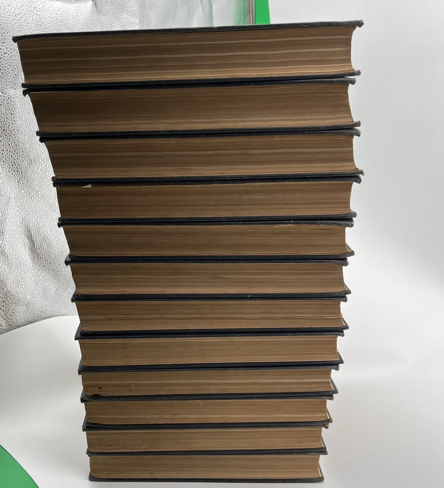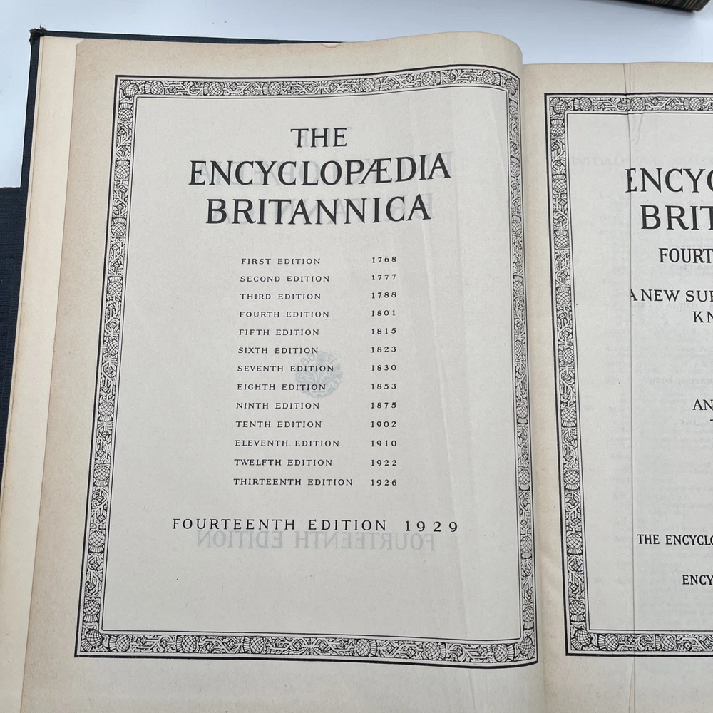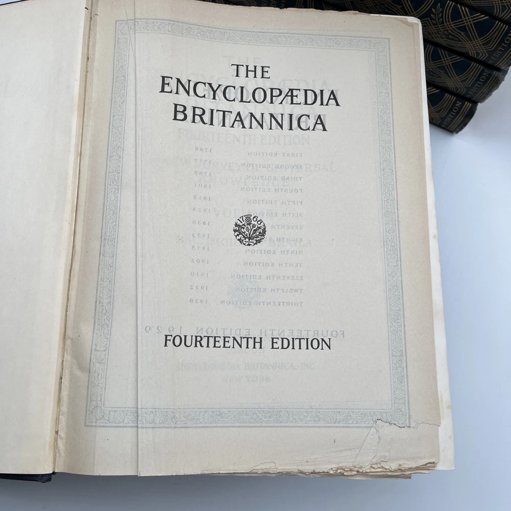 This is a partial set of the 14th Edition Encyclopaedia Britannica , published in 1929. It includes Volumes 1 through 12 (of a complete 24-volume set). These books are nearly 100 years old and offer a fascinating historical perspective on early 20th-century knowledge and scholarship. Publisher: Encyclopaedia Britannica, Inc. Edition: 14th, 1929 Volumes Included: 1 to 12 Language: English Binding: Hardcover Condition: Overall good antique condition. Pages are clean and legible. Some volumes may show signs of age such as scuffing, light foxing, and edge wear. A few pages are slightly damaged but remain readable. Covers show typical wear for books of this age. Note: This listing is for Volumes 1–12 only , not the complete set. A wonderful collector’s item, library addition, or vintage decor piece.