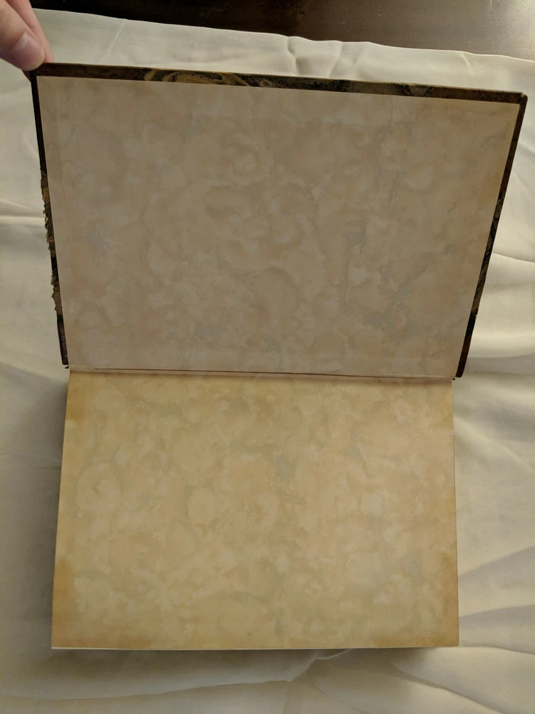 Wear to edges of cover. Well-made book - pages are still tightly bound. Slight age darkening. I can find no writing. See photos....