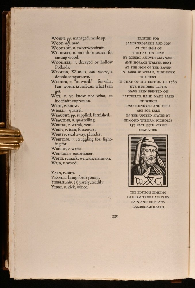 Click here to see our other books! Five Hundred Points of Good Husbandry Thomas Tusser; Walter Scott; Rudyard Kipling; E.V. Lucas 1931 James Tregaskis & Son : London 10.5" by 7.5" [4] v-xii, [2] 336pp SUMMARY A limited edition copy of Thomas Tusser's sixteenth century work on husbandry, handsomely bound in full morocco by Bain and Company. Leather Binding,Limited Edition,Original Binding,Signed Binding Overall Condition: Near Fine This book weighs 3 KG when packed UK Postage: £ 3.99 US Postage: £ 36.99 EU Postage : £ 25.99 European Postage: £ 27.99 Asia Postage: £ 47.99 Worldwide Postage: £ 69.99 DESCRIPTION A near fine copy of Thomas Tusser's famous sixteenth-century work on husbandry, agriculture, and industry, part of a limited edition publication of five hundred copies printed on handmade Batchelor paper. Five Hundred Points of Good Husbandry is a long poem about agriculture, recording a year in the country. The work is informative and also instructive in farming and country customs, and give a good insight into the state of the country and agriculture in Tudor England. Written by Thomas Tusser, a sixteenth-century English singer, poet, and farmer. This edition includes an introduction by Sir Walter Scott, a Benediction by Rudyard Kipling, and a foreword by E.V. Lucas. Bound in full morocco by Bain and Company in Bath, as issued. Including a small ink notation to the front pastedown: 'October 8th, 1937'. CONDITION In full morocco binding by Bain and Company. Externally, very smart, with a touch of fading to the spine and extremities. Previous owner's small ink notation to the front pastedown. Internally, firmly bound. Pages are bright and clean. Overall Condition: Near Fine GLOSSARY OF TERMS Overall Condition (Dustwrapper condition rating is shown after that for the book itself, where a dustwrapper is present) Fine - Very well preserved copy showing very little wear Very Good Indeed - Only one or two minor faults, really a very attractive copy Very Good - Quite a wide term meaning no major faults but probably several smaller ones often expected given the age of the book, but still a respectable copy Good - Meaning not very good. Some more serious faults as will be described in the condition report under 'condition' Good Only - Meaning one or more faults that could really do with repair Fair - As with good only above but with other faults leaving a compromised copy even after repair Poor - Really bad and possibly seriously incomplete. We only sell books in this condition where their rarity or value makes them attractive none the less. Major defects will be described. GUARANTEE We offer a full money back guarantee on our descriptions. Please ask for details and conditions. We prefer PAYPAL. If you pay via PAYPAL we will post the item off the same or the next working day with the postage you have selected. Please note we cannot accept USD cheques
