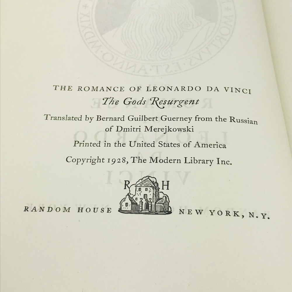 1931 Random House ,THE ROMANCE OF LEONARDO DA VINCI -DMITRI MEREJCOVSKI 2nd printing