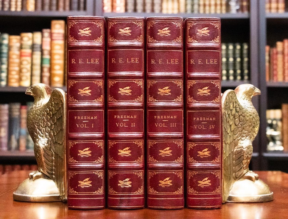 THIS COMPLETE FOUR VOLUME SET IS IN VERY GOOD+ CONDITION BEAUTIFULLY BOUND BY ATELIER BINDERY IN 3/4 LEATHER WITH BRIGHT GILT RULE TO BOARDS, SIX COMPARTMENTS AND FIVE RAISED BANDS TO SPINES WITH BRIGHT GILT DETAILS AND TITLE. BINDING AND HINGES ARE VERY GOOD, MARBLED END PAPERS AND PASTE DOWNS, NO LOOSE OR MISSING PAGES, PAGES ARE WITHOUT MARKS. SOME LIGHT SPORADIC FOXING. PROFUSELY ILLUSTRATED, BOOKS MEASURE 9"x6.5". 87 YEARS OLD. AN ATTRACTIVE SET. 1937 Robert E. Lee A Biography Douglass Southall Freeman Leather Atelier Bindery 1937 Robert E. Lee A Biography Douglass Southall Freeman Leather Atelier Bindery Description THIS COMPLETE FOUR VOLUME SET IS IN VERY GOOD+ CONDITION BEAUTIFULLY BOUND BY ATELIER BINDERY IN 3/4 LEATHER WITH BRIGHT GILT RULE TO BOARDS, SIX COMPARTMENTS AND FIVE RAISED BANDS TO SPINES WITH BRIGHT GILT DETAILS AND TITLE. BINDING AND HINGES ARE VERY GOOD, MARBLED END PAPERS AND PASTE DOWNS, NO LOOSE OR MISSING PAGES, PAGES ARE WITHOUT MARKS. SOME LIGHT SPORADIC FOXING. PROFUSELY ILLUSTRATED, BOOKS MEASURE 9"x6.5". 87 YEARS OLD. AN ATTRACTIVE SET. !!!CLICK HERE!!! Visit My eBay Store TO SEE ALL THE BOOKS WE HAVE FOR SALE!!! IF YOU LIKE WHAT YOU SEE THAN SAVE US TO YOUR FAVORITES BY CLICKING HERE. Add me to your Favorite Sellers RARE ANTIQUARIAN BOOKS CAN BE FRAGILE AND NEED TO BE HANDLED WITH CARE. About us: Reagan's Rare Books is a purveyor of Antiquarian books primarily from the 18th and 19th centuries. We love antique books! We search all over the country for the finest rare books, looking for those with beautiful bindings and in great condition so that we can offer you, the customer, a truly rare one of a kind collectible. Paypal Preferred. Please make payment arrangements within 48 hours of winning your auction. We reserve the right to re-list items not paid within 5 days. Shipping *To Insure That Your Package arrives without any Problems , Please Double Check to Make Sure That The Address You Have Selected in eBay Is Correct. All books are carefully bubble wrapped and packed in a box with adequate packing peanuts to prevent any damage during shipment. All books are shipped with delivery confirmation and tracking. Books over $75.00 are automatically insured. RETURNS 100% Satisfaction Guaranteed. Returns accepted for any reason within 30 days of receipt. PLEASE CHECK MY OTHER LISTINGS. POSTING NEW RARE BOOKS DAILY/WEEKLY. Pictures sell! Auctiva offers Free Image Hosting and Editing. 300+ Listing Templates! Auctiva gets you noticed! The complete eBay Selling Solution. Track Page Views With Auctiva's Counter