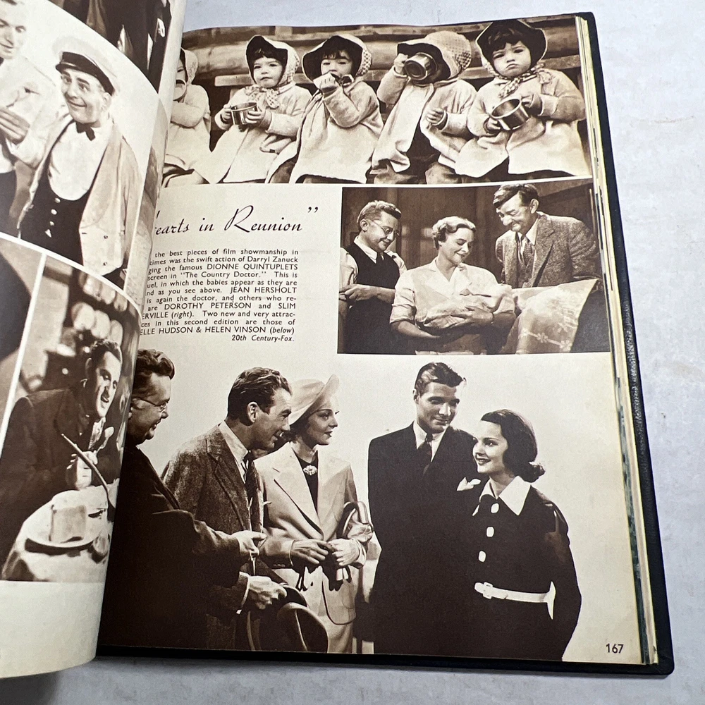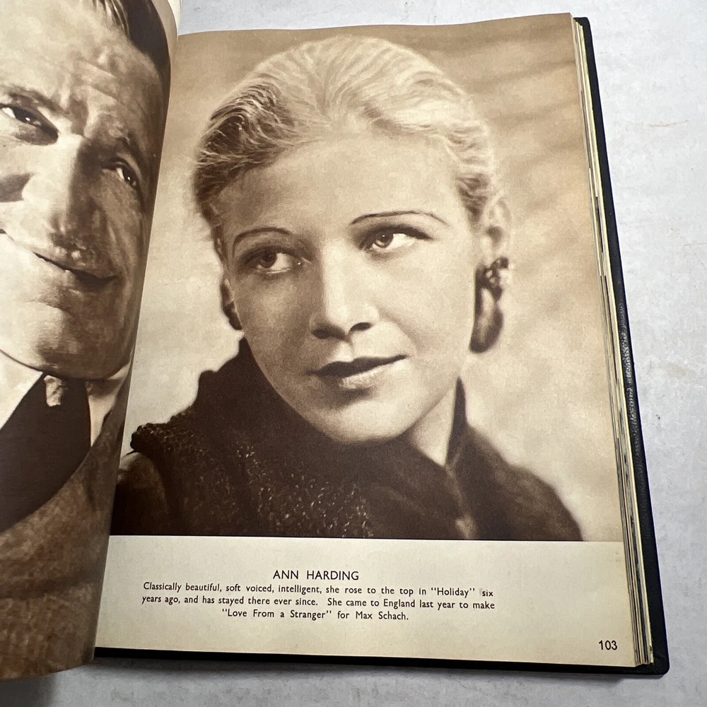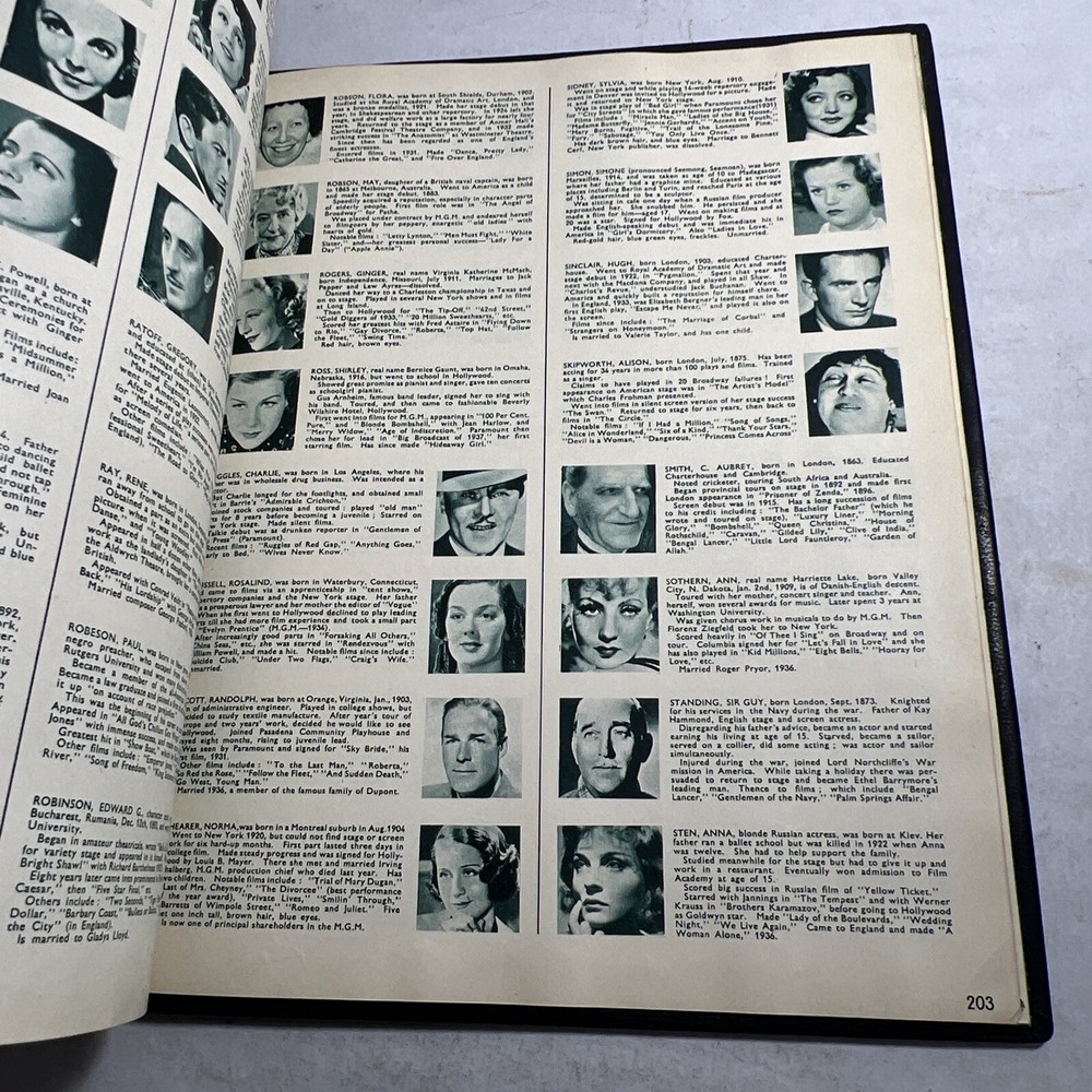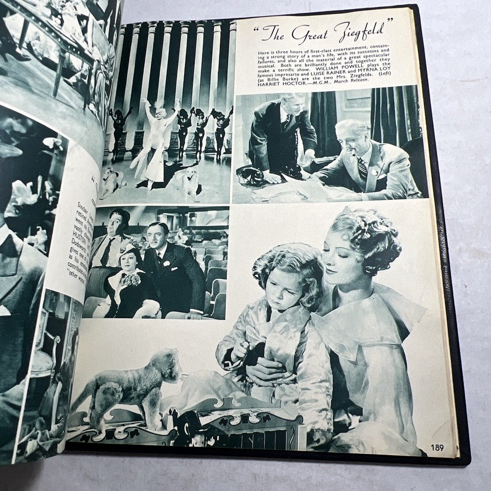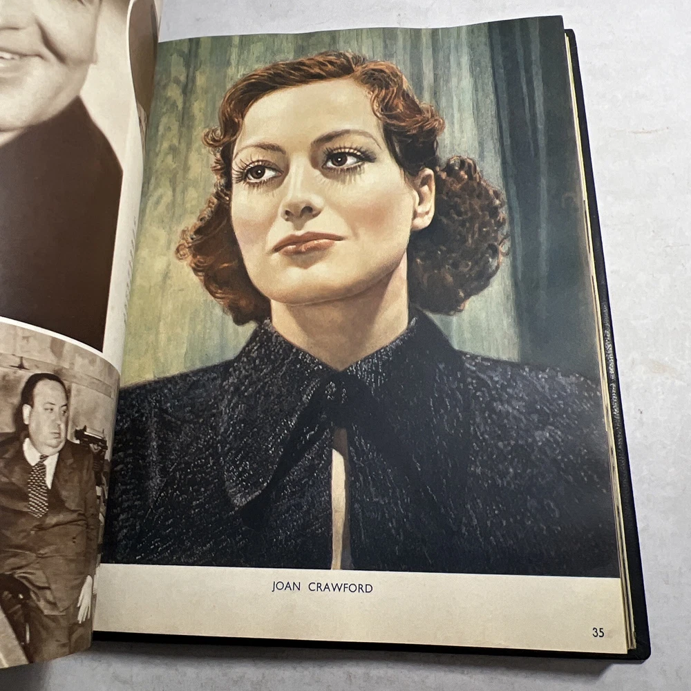 1937 STARS & FILMS by Stephen Watts which has been adorned with gold gilt lettering to the front cover and spine in a beautiful leather bind. Also comes with a 1960’s News Clipping that is of an article of Shirley Temple as well as a high gloss 8x10 Shirley Temple Promo Photo which was stuffed within the pages as was the clipping. - Bookmark (green and attached to the book) - Hardcover (rare, one in existence - which is this one). - Book features Shirley Temple, Joan Crawford, Gary Cooper and many other notable stars from the Golden Era! - Photo from “Poor Little Rich Girl” NOTE: The original cover of the book by Stephen Watts is NOT included within the bound volume. LANGUAGE: English PAGES: 208 MEASURES: 9” x 11.25” (book), 8” x 10” (photo) CONDITION: (Book) Has wear to the spine in the form of chipping and scuffing. Internal pages have some staining and discoloration around the edges, mainly in regards to the inside cover board pages and the first few internal pages. Slight dusty vintage smell to this book but not overly so, is very faint. Overall: VERY GOOD! (Photo) Has torn bottom right corner, has corner and edge wear in the form of crimps or creases, face of photo when held under light may have slight indentations or scuff marks. Back has quitting “Poor little rich girl” and other markings around edges. Overall: GOOD SHIPPING: Fast & free via USPS (for USA). Will ship same day if payment is received by 3pm EST! Free returns! Shipped with care (cardboard backers, bubble wrap, peanuts & or double boxed whenever necessary). Signature confirmation for high value items is required. ID: D