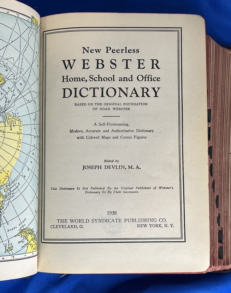 1938 Black Vintage Dictionary New Peerless Webster Dictionary.
