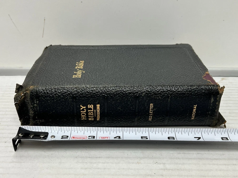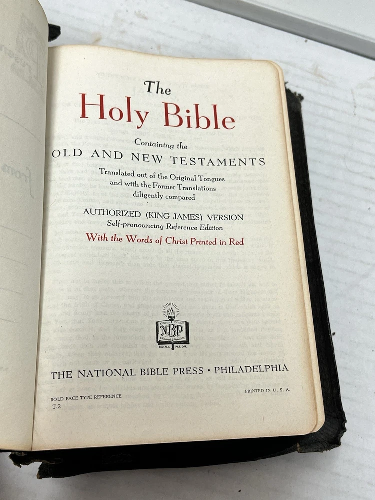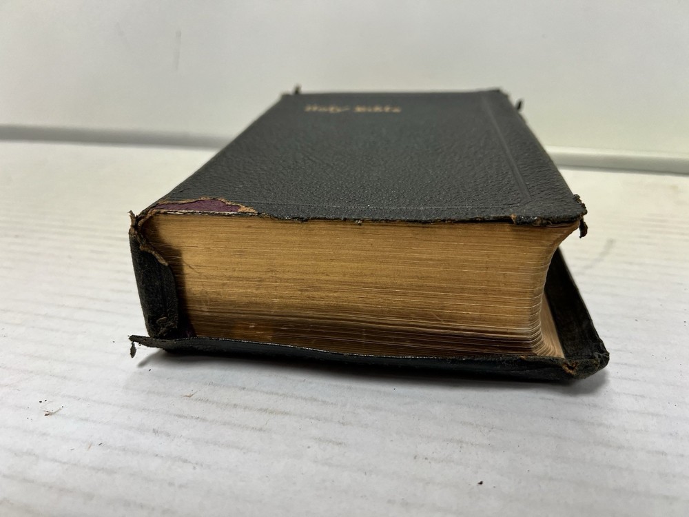 Leather cover is worn and has tears. Pages are in very good shape other than 2 pages of the concordance are torn out but still present. Please see pictures for condition....