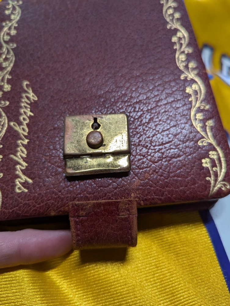 Mostly blank, I've included photos of the writings that are in it, they could be removed and this could be used as a sketch book. Clasp can be reattached easily, strap was removed from it because it's...