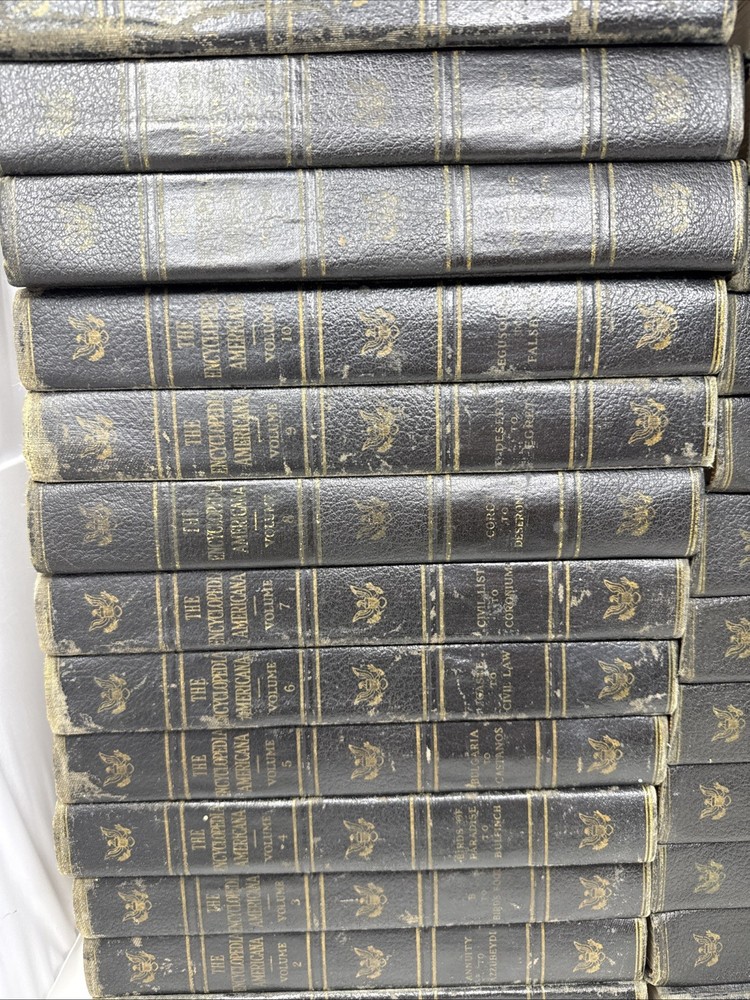 Fading on covers is present from age. Majority of the pages/books are in good condition. Two books show signs of prior water damage.Minor scribbles on one page. Preowned condition. See photos for full overview. Please reach out for combined shipping. If you are an international buyer, and the shipping cost seems high, let me know, and I can take another look at the dimensions and weight of the package. Fast ship!