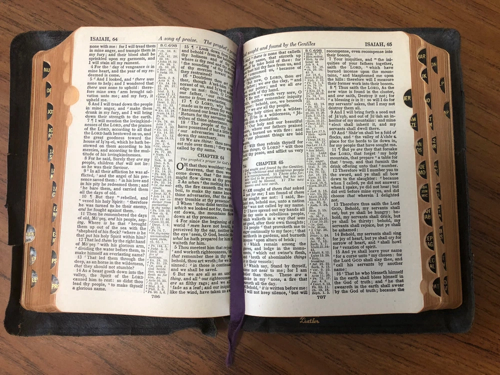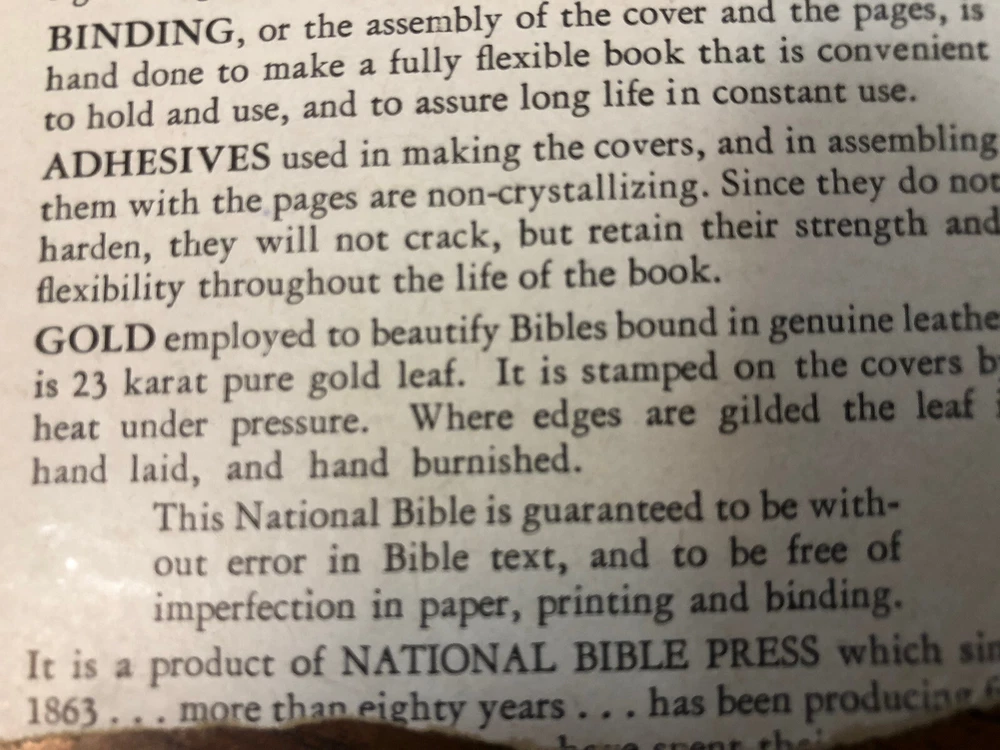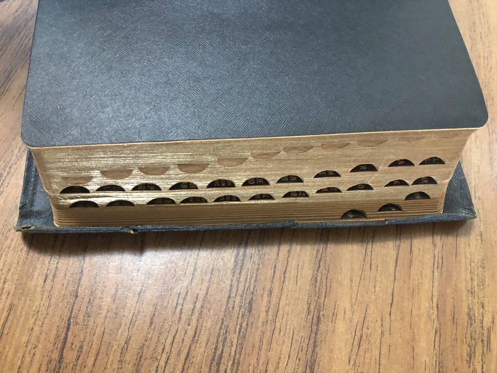 This vintage 1944 KJV Bible is a true treasure with its genuine leather cover and elegant 23K gold leaf accents. The self-pronouncing text and reference features make it incredibly useful, while the well-preserved interior remains clean and unmarked. Though the leather shows some wear and the pages have a slight old-book scent, its character adds to its charm. Perfect for collectors or anyone who appreciates a timeless, high-quality Bible with maps, concordance, and tab indexes. A beautiful piece of history!