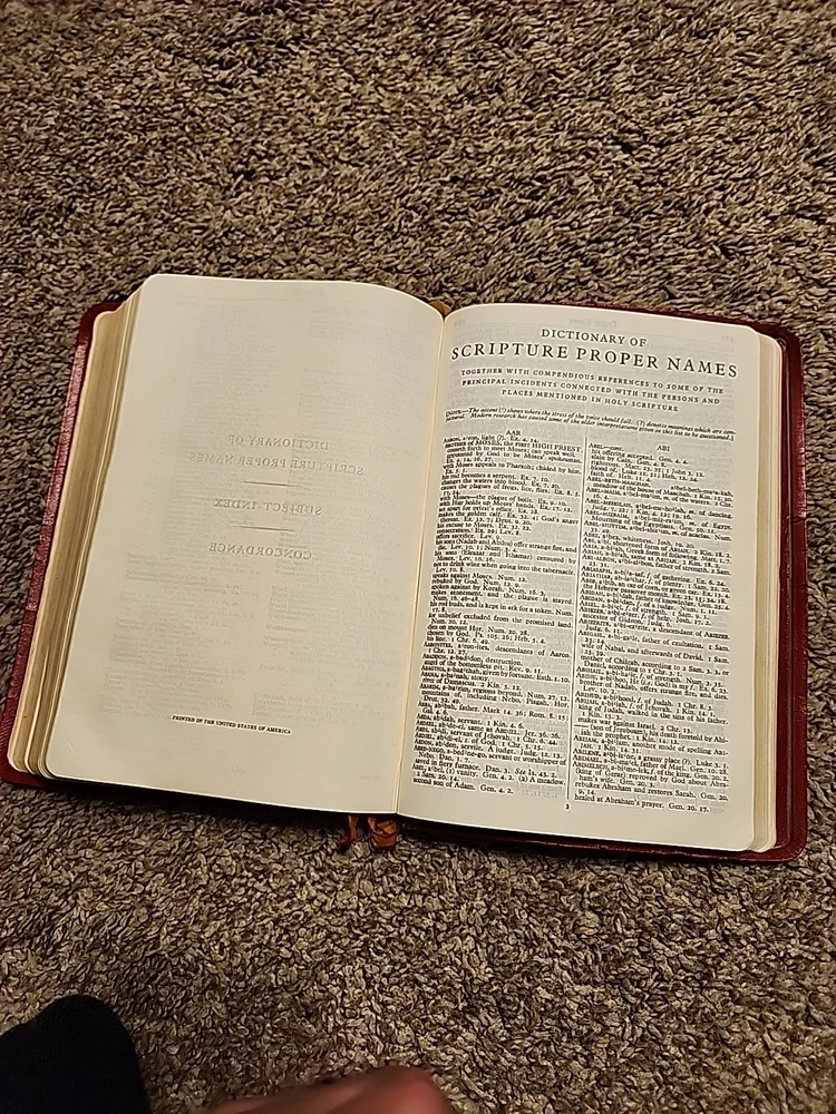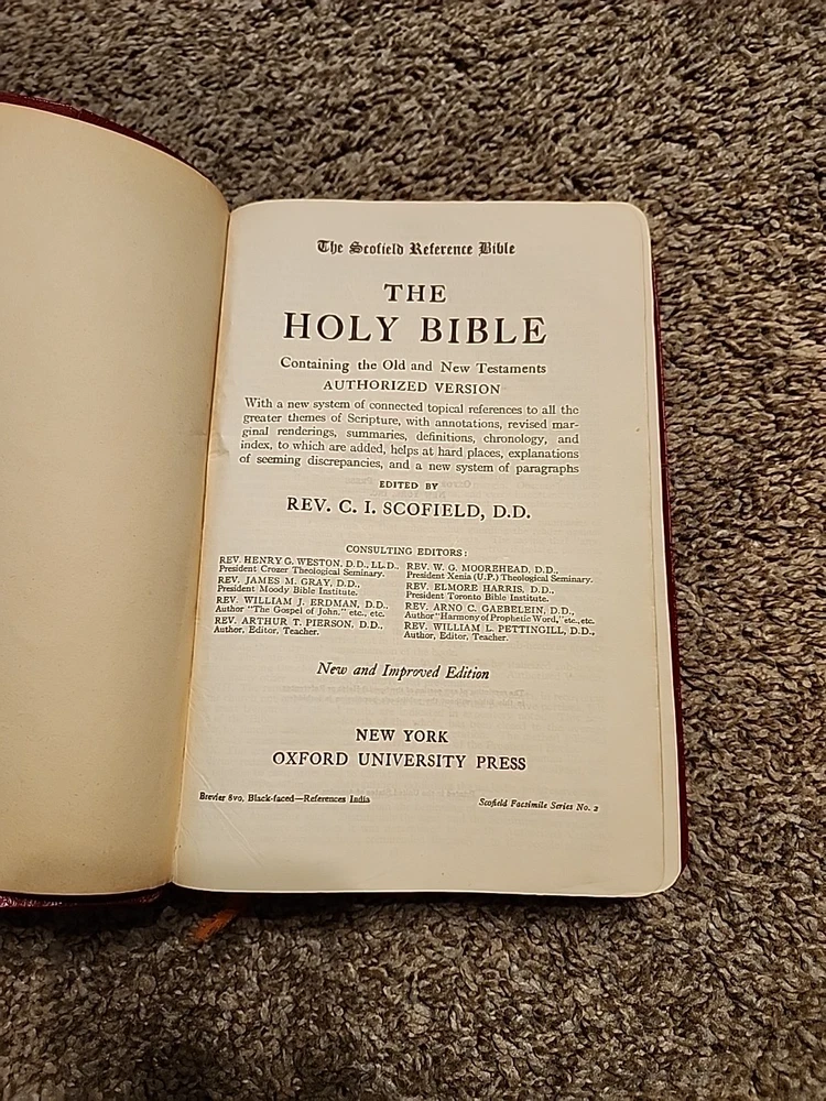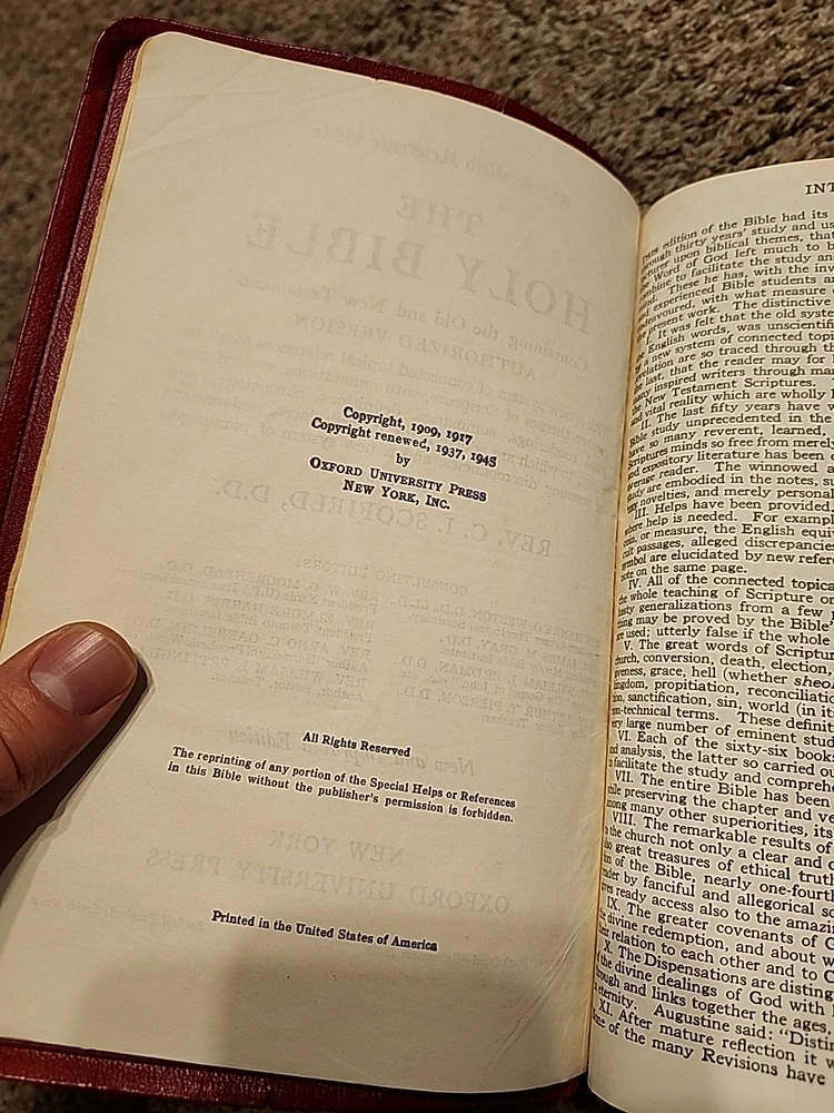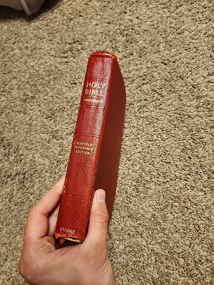 Name on the front, some foxing. Some wear on outside. Overall in decent shape. See pics for more. Sold as-is. This vintage Holy Bible Concordance Scofield Reference Edition Oxford Leather Bound Red is a must-have for any collector or religious scholar. Published in 1945 by Oxford University, this hardcover book is beautifully illustrated and includes historical references that will amaze you. With topics ranging from Bible and Bibles to Religion & Spirituality, this nonfiction book is perfect for young adults and adults alike. The book is signed and inscribed, adding to its charm and uniqueness. This activity book is a unit type item and comes in a unit quantity of 1. Don't miss out on the opportunity to own this beautiful piece of history.