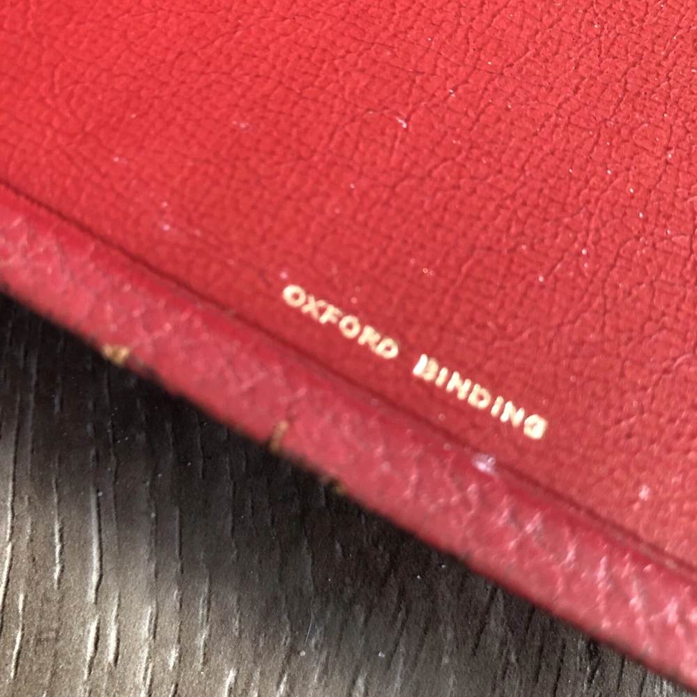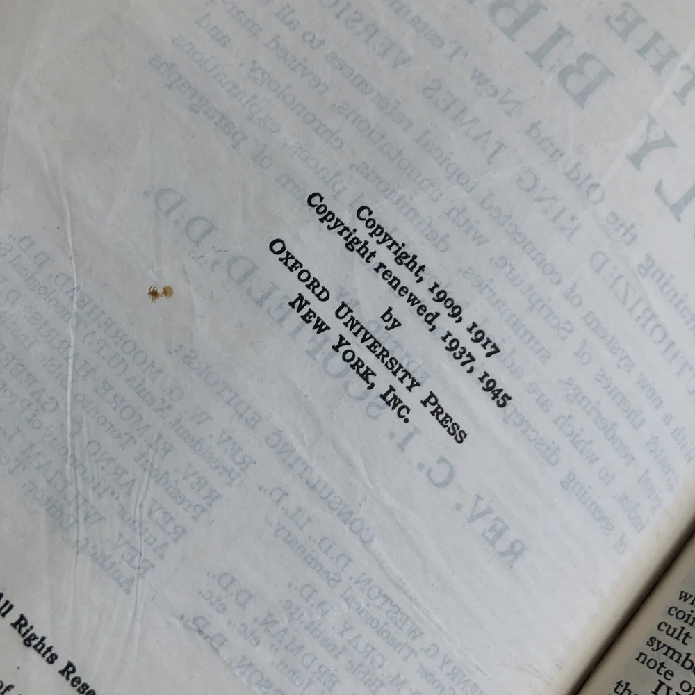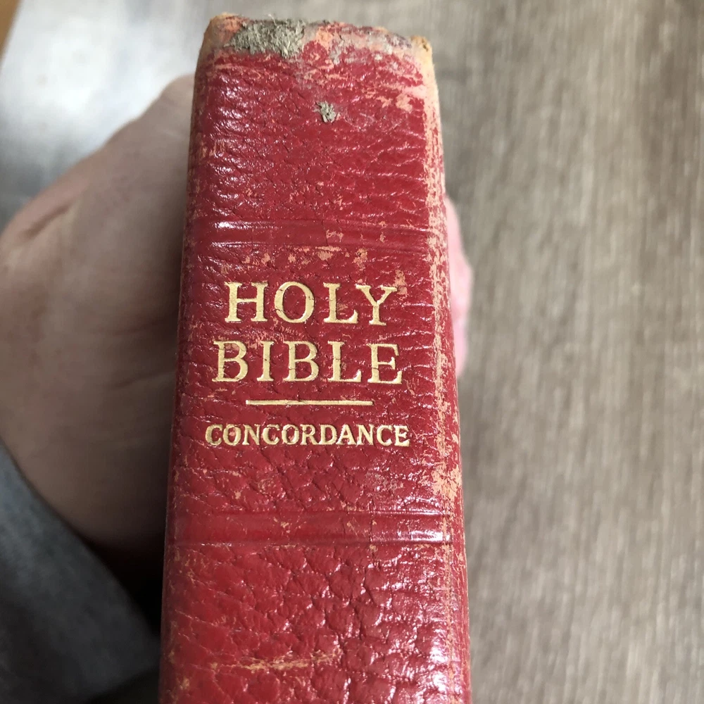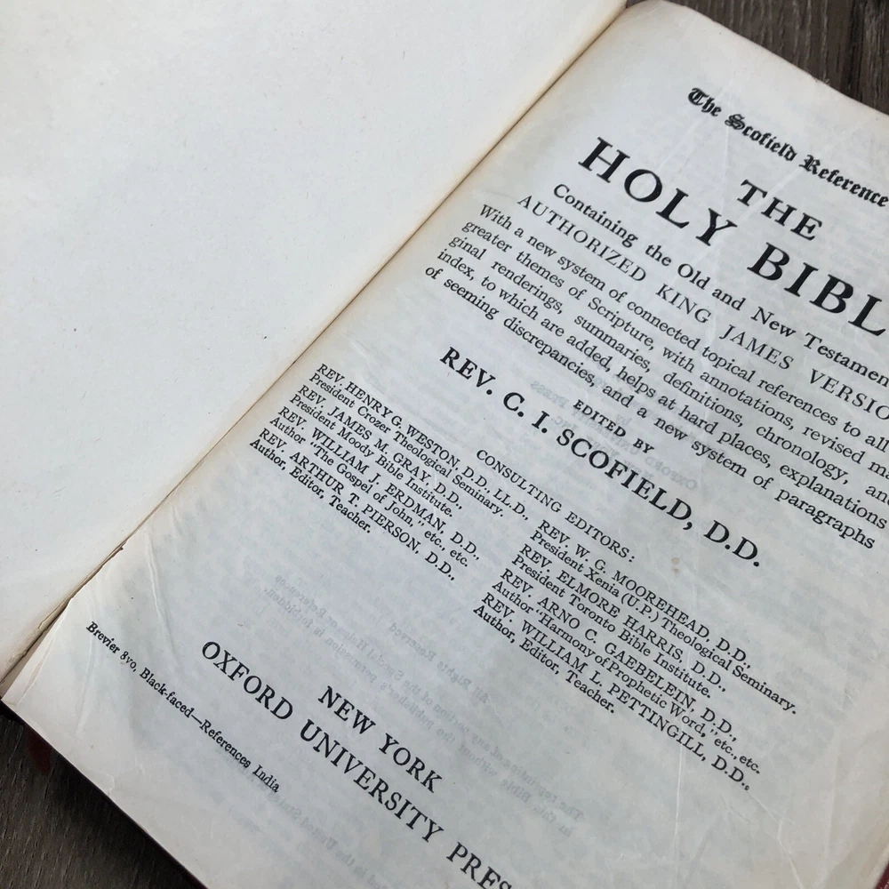 1945 Oxford Scofield Reference Bible KJV - Facsimile No. 2 - Red Persian Leather. This is a used Bible. There are blemishes and imperfections. Please see all photos. I have tried to show much of the damages in the photos. There is some writing. Pages are separating. The spine is separating. Please see all photos.