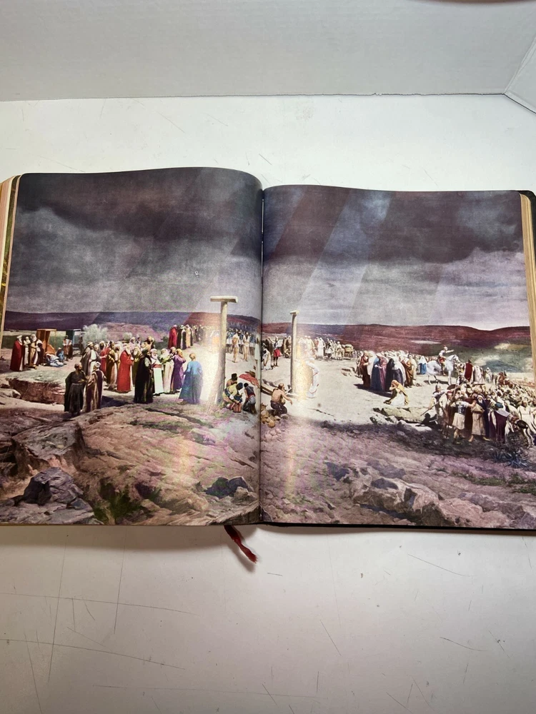 This vintage 1951 Brown Leather Hertel Bible is a beautiful find! While the binding is separating and the first info page has a tear, most pages are clean and unmarked—perfect for collectors. The classic blue ribbon adds charm, and the minimal markings give it character. Great condition overall for its age—just message if you'd like more photos before buying!