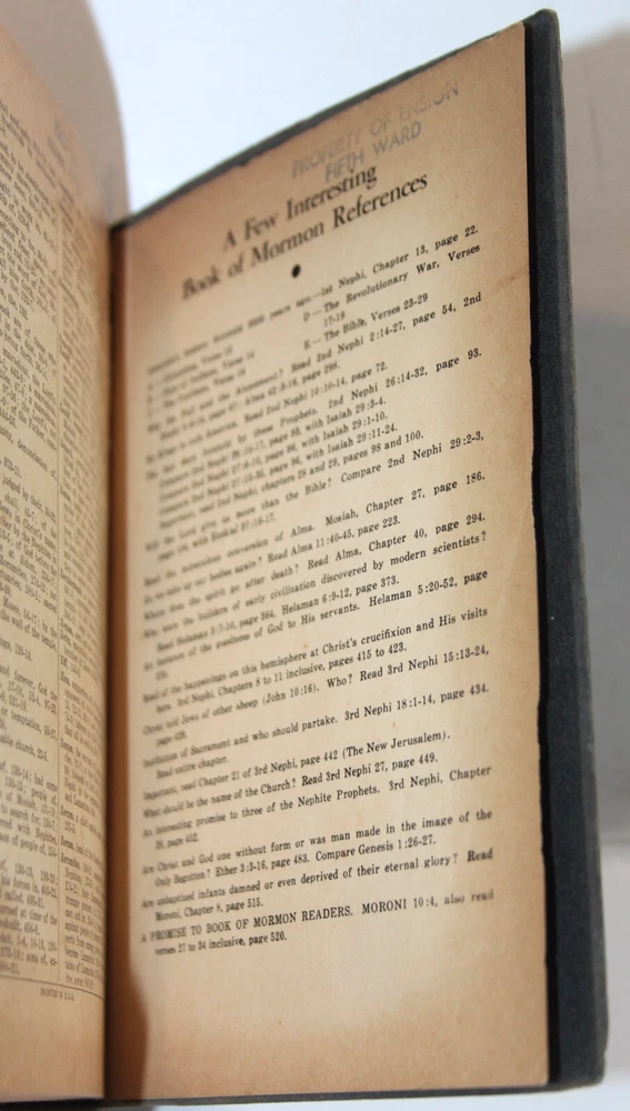 This vintage Book of Mormon is absolutely stunning! The Angel Moroni cover adds such a classic, spiritual touch, and the leather binding feels rich and durable. As a collector, I appreciate the excellent condition and historical significance—it’s like holding a piece of LDS heritage. The references inside are fascinating, offering deeper insights into the faith. A true treasure for anyone passionate about religious texts or Mormon history. Highly recommended!