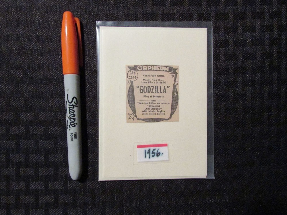 1957 GODZILLA King of Monsters Print Ad / Greeting Card FN 6.0 Strange Adventure clipped ads are affixed to blank greeting card , with envelope Condition & Grade: FN , tanning to edges , SEE PICS!!! This item was uploaded by DG. If there are any problems with your order whatsoever, please message us before leaving feedback and we'll be happy to work with you to fix the situation! We ship worldwide, combine purchases, and charge exact shipping. The price may vary based on size, weight, and location. If you are automatically overcharged for shipping, message us and we'll be happy to revise the invoice or refund you the excess amount. If you have any questions regarding shipping, please message us. International Buyers – Please Note: Import duties, taxes, and charges are not included in the item price or shipping cost. These charges are the buyer's responsibility. Please check with your country's customs office to determine what these additional costs will be prior to bidding or buying. Payment can be made by PayPal and credit cards directly. 65,000+ items in total in my eBay store! Frequently Asked Questions: Is the item pictured the exact one for sale? Yes! We don't use stock images and go through great lengths to photograph everything we list. The item pictured is exactly what you should receive UNLESS it is a fixed price listing with multiple items available. How do you grade? Grading is very subjective, but we are professionals with decades of grading experience between us who try the best we can to accurately describe the condition of the items we list. Anthony is an Overstreet Comic Book Price Guide Advisor Do you combine shipping? Yes, of like items. Such as: several comics can fit in one cardboard mailer, as can more than one record. Multiple art pages can easily be combined because they are light and thin. Where combined shipping differs is with size and weight. For instance, two statues require a much bigger box. Same goes for CGCs, as the package gets bigger and heavier as you go. Do you ship well? I’ve had some bad experiences… You needn’t worry; we are professionals who value your business and want your item to arrive safely as much as you do. I have been collecting for over 30 years. I send out items the way I would like to receive them. The tracking says my item is "OUT FOR DELIVERY" in New Jersey. Why is that? If the tracking indicates that the item is "OUT FOR DELIVERY" in NJ don't worry, it's just what the tracking says when it's carried over from the postman to the sorting center. This is normal for our Post Office and will not impact you receiving your item in a timely matter. What is the difference between a RUN and a LOT? Good question. A RUN will be a collection of consecutive issues with no breaks in between them. If it says RUN of #s 1 - 50 you will receive 50 consecutive comics. A LOT will be within a certain range, so a 50pc LOT will not contain consecutive books. I changed my mind after successfully winning the auction or fixed price listing, will you cancel the transaction? Please only bid or hit BUY IT NOW if you are willing to follow through and pay for the item, we will not cancel the transaction. As a seller, eBay penalizes us every time we cancel an order, so it is detrimental to our business to do so. Therefore if you will not pay, then you'll have to let eBay cycle this to an “unpaid item” and accept whatever action eBay deems necessary. 65,000+ items in total in my eBay store! MEET OUR STAFF: "At Anthony's Comic Book Art we're caffeinated to give you excellent customer service!" Pictured left to right: Nicole, Connelly, Bobby, Anthony, Shannon, Amanda, and Chris AS SEEN ON TV Anthony is always interested in doing business and answering your questions. If you are new to collecting or have something to sell, feel free to ask any questions that you may have. 65,000+ items in total in my eBay store! Small, Regular, and Large Portfolios available; see my eBay store!