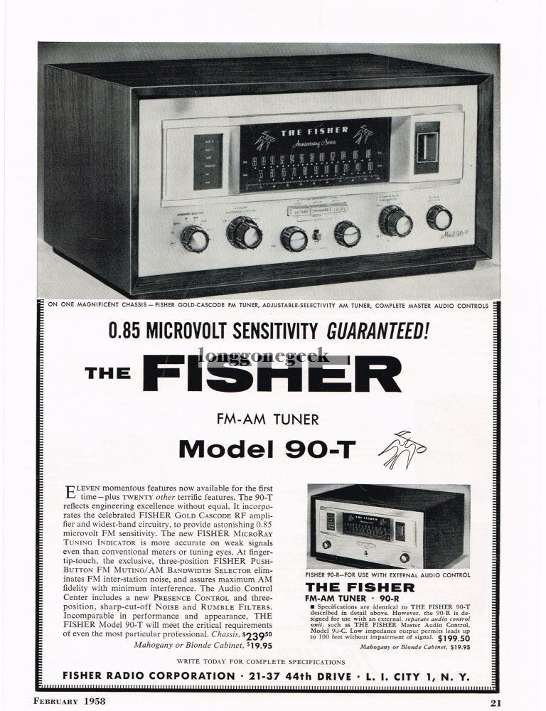 ADVERTISEMENT : 1958 Fisher Model 90-T FM Am Tuner Hi-Fi Vtg Print Ad SIZE APPROXIMATELY: 8" x 11.5" CONDITION : Excellent-no tears, stains or creases Please note: This sale is for the vintage paper advertisement shown and not the item in the advertisement. It is not a copy, reprint or repro of any kind. Why not purchase one (or more) now! These old advertisements are ideal for: Collectors Historians Museums An intriguing gift Home and Business decor Don't just think of these as old pieces of paper. These are pieces of history. They show the changing fashions, architecture, furniture, design aesthetics and much more over the course of time. Many old ads have detailed info about the product they are advertising and can help with research. They also make a fine substitute for expensive artwork. Many old ads are very beautiful, or have bold graphics; many are drawn and signed by famous artists and illustrators. You could decorate your business, whole house or apartment, man or woman cave with vintage advertisements for the same price as one piece of fine art. Like this item? Why not purchase it now! About The Advertisements All advertisements are carefully removed from the source (magazines, newspapers, books, etc.) and are completely original. No copies, reprints or reproductions of any kind . Most vintage ads were printed on very thin paper and so some of the printing or advertisement from the reverse side may be visible. Ads are shipped flat and are packaged using archival acid-free backing boards and acid-free, clear plastic sleeves. Payment, Shipping and Returns I accept Paypal. Combined Shipping: I only charge shipping for one ad and/or print, no matter how many are purchased, if all items are paid for with a single payment. Items paid for separately will be shipped separately and do not qualify for discounts. If you are having trouble making a combined payment for all your items, please contact me BEFORE making your payment. I may be able to help out and save you some money. 30 day return policy for any reason Thanks for looking!