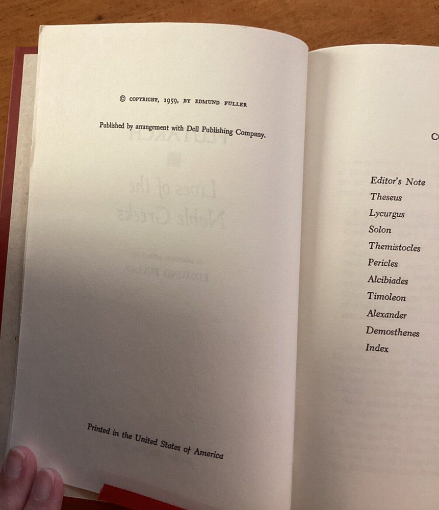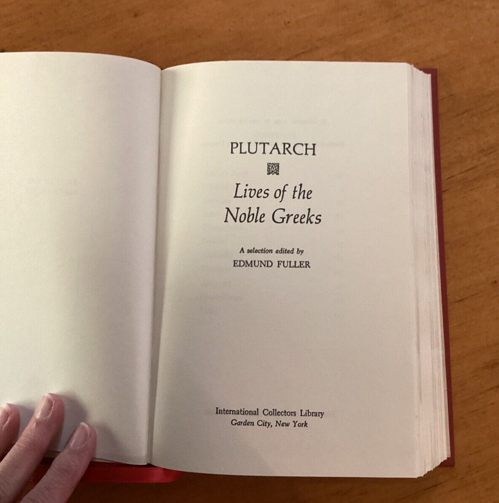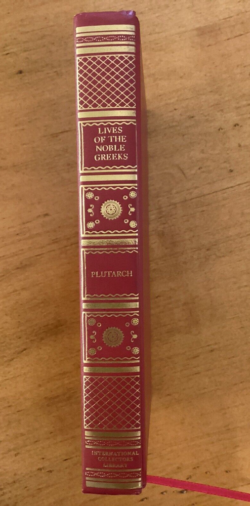 Plutarch’s goal in his biographies is to present readers with examples of conduct to imitate and to avoid in their own lives. Important insights into liberty and responsibility. This 1959 lovely red bound copy with decorative gold lettering has a matching ribbon marker. A classic piece of literature and a must have for any home library.