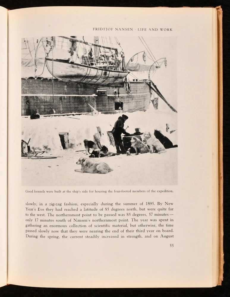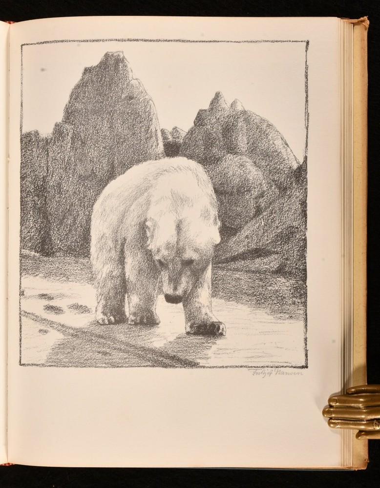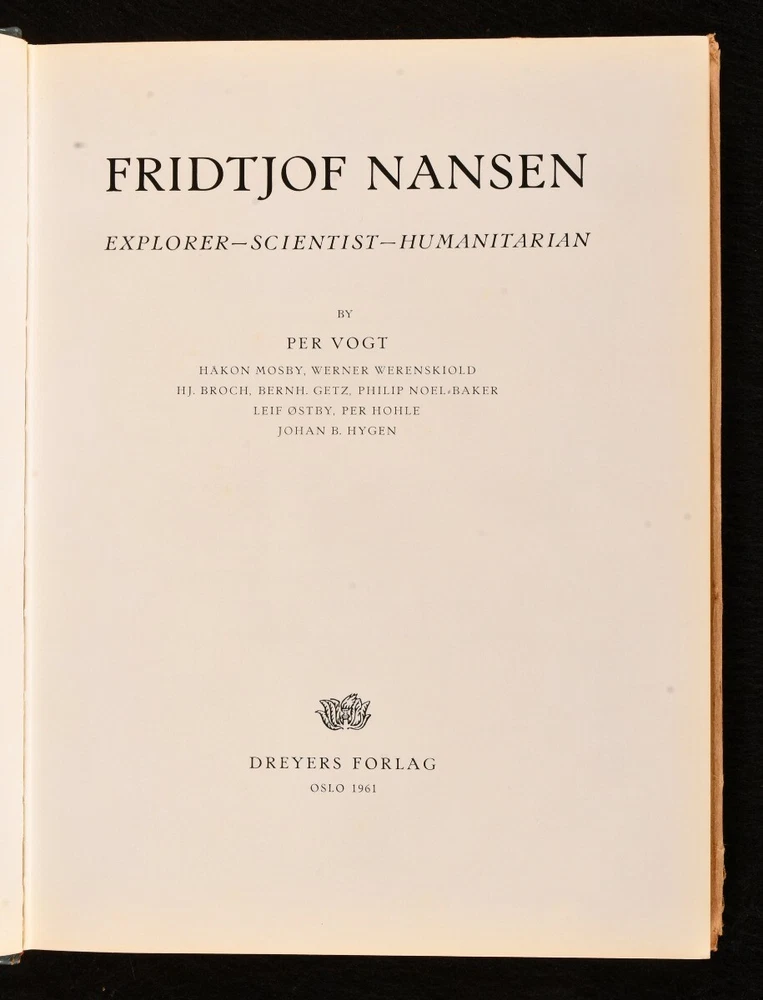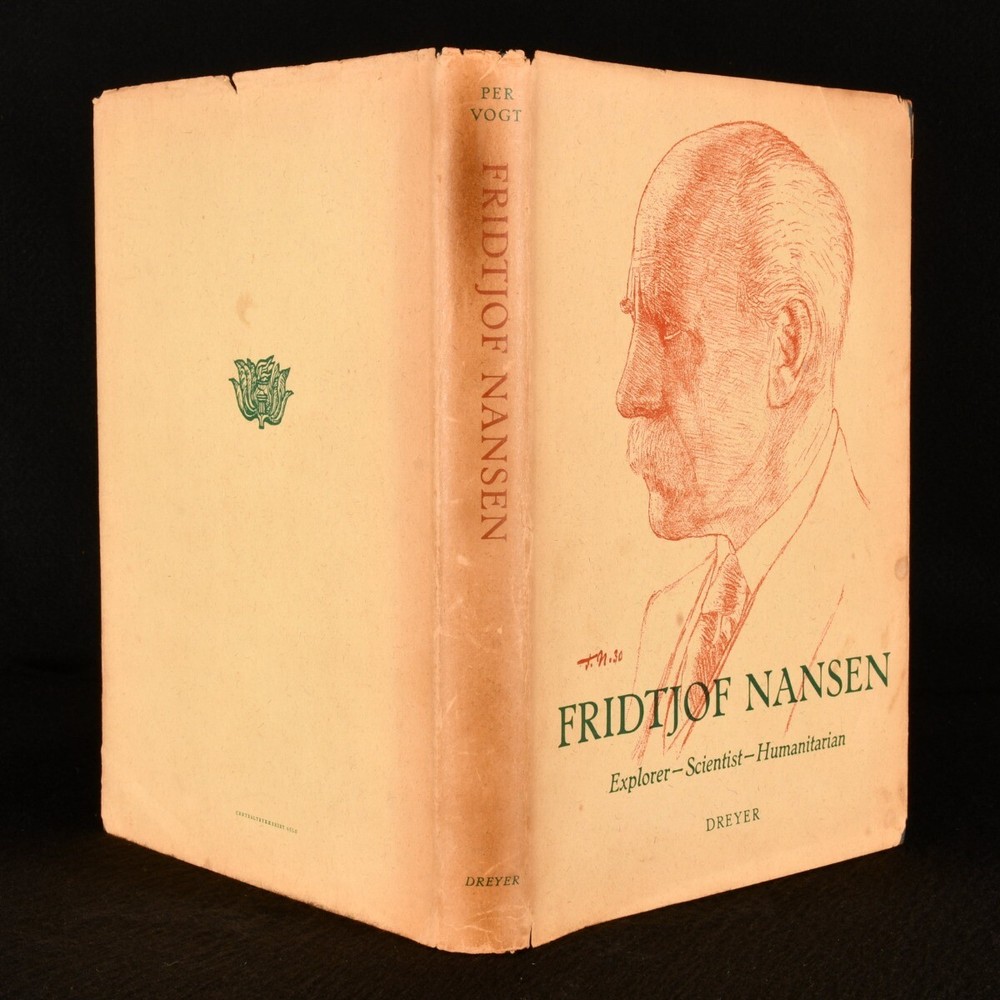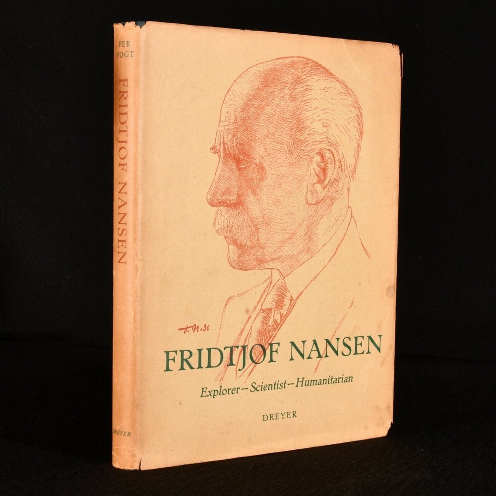 Click here to see our other books! Fridtjof Nansen: Explorer - Scientist - Humanitarian Per Vogt 1961 Dreyers Vorlag : Oslo 10.5" by 8" 202pp. SUMMARY A beautiful first English language edition of Per Vogt's biography of Norwegian explorer Fridtjof Nansen, adorned with beautiful illustrations and complete with unclipped dust wrapper. Colour Plates,First Edition,Illustrated,Leather Binding,Publishers' Original Binding,With Dustwrapper Overall Condition: Near Fine This book weighs 1 KG when packed UK Postage: £ 3.99 US Postage: £ 22.99 EU Postage : £ 16.99 European Postage: £ 17.99 Asia Postage: £ 22.99 Worldwide Postage: £ 28.99 DESCRIPTION First English language edition of this work, preceded by the original Norwegian edition of 1941. An account of Nansen's extraordinary life and career as explorer, diplomat, and ice skater. Including descriptions of his voyages and explorations, in particular the famous 'Farthest North' dangerous voyage to the North Pole which marked the beginning of modern day exploration. Written by Per Vogt. Featuring numerous black and white photographic illustrations in text as well as a coloured frontispiece and ten full page plates of drawings, two of which in colour, and a map. Some illustrations by Nansen himself. Collated, complete. With unclipped dust wrapper. CONDITION In the original publisher's full calf binding. Externally very smart with only minor shelf wear, lightly marked to rear board. Dust wrapper unclipped and smart with minor chipping to extremities, occasional minor spot, age toning to spine. Internally, firmly bound. Pages bright and clean. Overall Condition: Near Fine Very Good GLOSSARY OF TERMS Overall Condition (Dustwrapper condition rating is shown after that for the book itself, where a dustwrapper is present) Fine - Very well preserved copy showing very little wear Very Good Indeed - Only one or two minor faults, really a very attractive copy Very Good - Quite a wide term meaning no major faults but probably several smaller ones often expected given the age of the book, but still a respectable copy Good - Meaning not very good. Some more serious faults as will be described in the condition report under 'condition' Good Only - Meaning one or more faults that could really do with repair Fair - As with good only above but with other faults leaving a compromised copy even after repair Poor - Really bad and possibly seriously incomplete. We only sell books in this condition where their rarity or value makes them attractive none the less. Major defects will be described. GUARANTEE We offer a full money back guarantee on our descriptions. Please ask for details and conditions. We prefer PAYPAL. If you pay via PAYPAL we will post the item off the same or the next working day with the postage you have selected. Please note we cannot accept USD cheques
