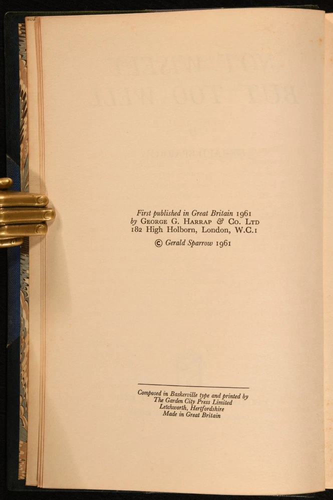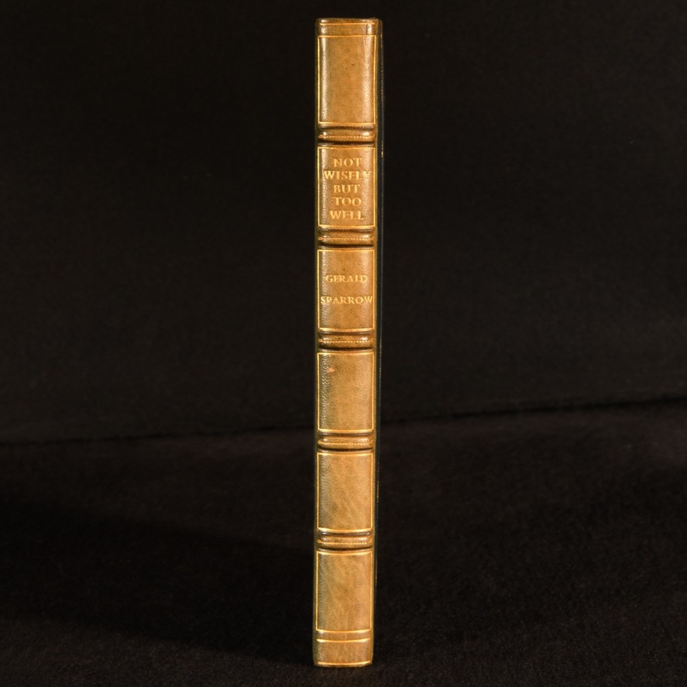 Click here to see our other books! Not Wisely But Too Well Gerald Sparrow 1961 George G. Harrap : London 8.5" by 6" 6-192pp SUMMARY The very scarce first edition of British lawyer Gerald Sparrow, in a signed Sangorski & Sutcliffe half morocco binding. First Edition,Leather Binding,Signed Binding,Very Scarce Overall Condition: Near Fine This book weighs 1 KG when packed UK Postage: £ 3.99 US Postage: £ 22.99 EU Postage : £ 16.99 European Postage: £ 17.99 Asia Postage: £ 22.99 Worldwide Postage: £ 28.99 DESCRIPTION A very scarce first edition, first impression. In a signed half morocco binding by Sangorski & Sutcliffe. The biography of George Sparrow, a British lawyer, judge, and travel writer who served on the International Court in Bangkok for over twenty years. Sparrow was interned under harsh conditions by the Japanese after their 1941 invasion of Thailand. With the inscription of T.S.R. Mort to a front blank. Sparrow was prolific, authoring over forty books, largely travel works. CONDITION In a half morocco signed binding, with cloth covered boards, and marbled endpapers. Externally, excellent. Fading to back strip, as is common with navy morocco. Former owner's inscription to a front blank. Internally, firmly bound. Pages clean and bright. Overall Condition: Near Fine GLOSSARY OF TERMS Overall Condition (Dustwrapper condition rating is shown after that for the book itself, where a dustwrapper is present) Fine - Very well preserved copy showing very little wear Very Good Indeed - Only one or two minor faults, really a very attractive copy Very Good - Quite a wide term meaning no major faults but probably several smaller ones often expected given the age of the book, but still a respectable copy Good - Meaning not very good. Some more serious faults as will be described in the condition report under 'condition' Good Only - Meaning one or more faults that could really do with repair Fair - As with good only above but with other faults leaving a compromised copy even after repair Poor - Really bad and possibly seriously incomplete. We only sell books in this condition where their rarity or value makes them attractive none the less. Major defects will be described. GUARANTEE We offer a full money back guarantee on our descriptions. Please ask for details and conditions. We prefer PAYPAL. If you pay via PAYPAL we will post the item off the same or the next working day with the postage you have selected. Please note we cannot accept USD cheques