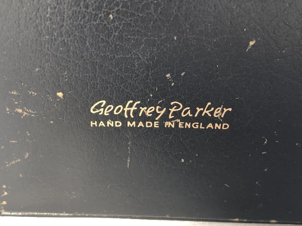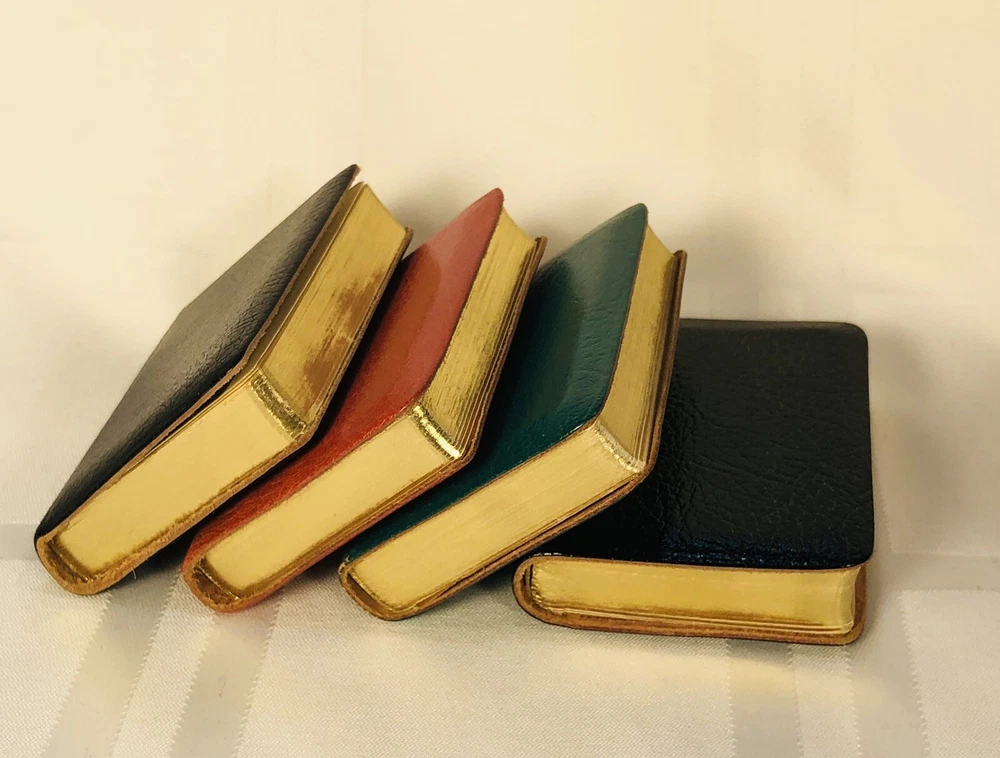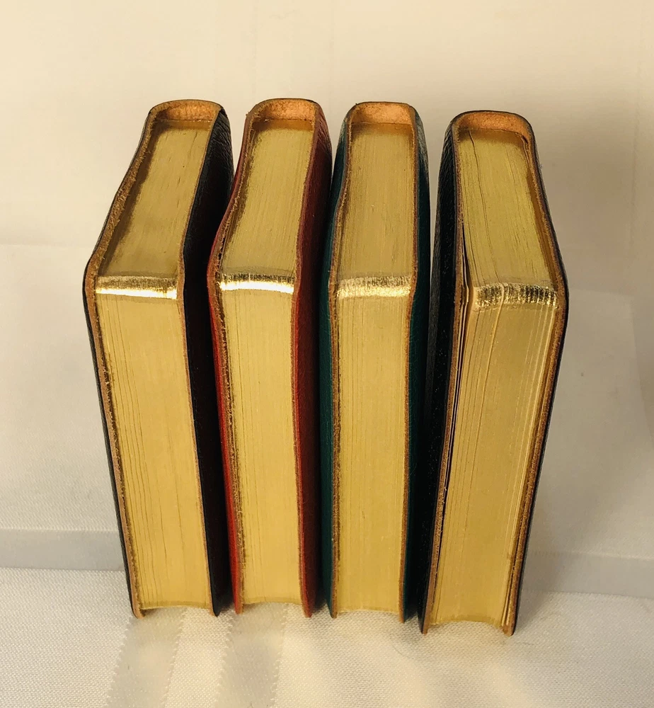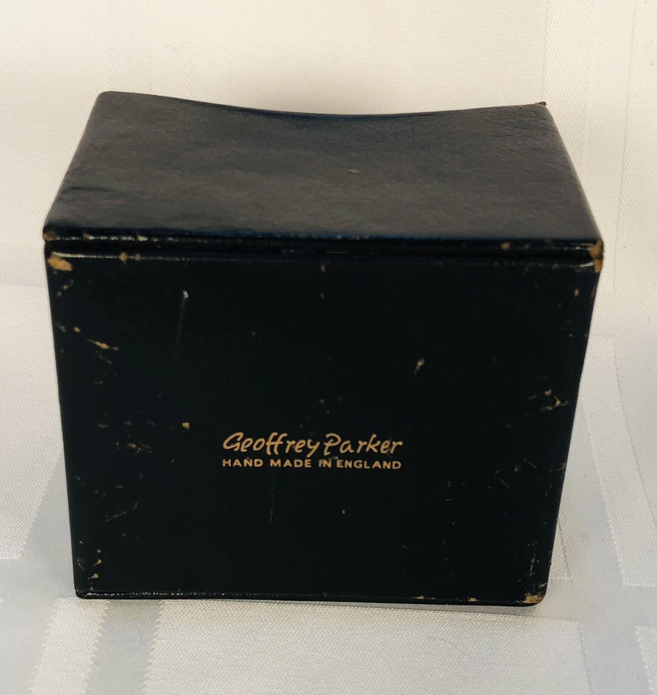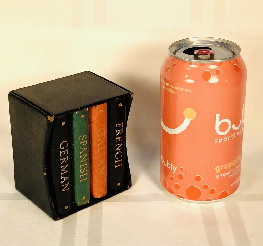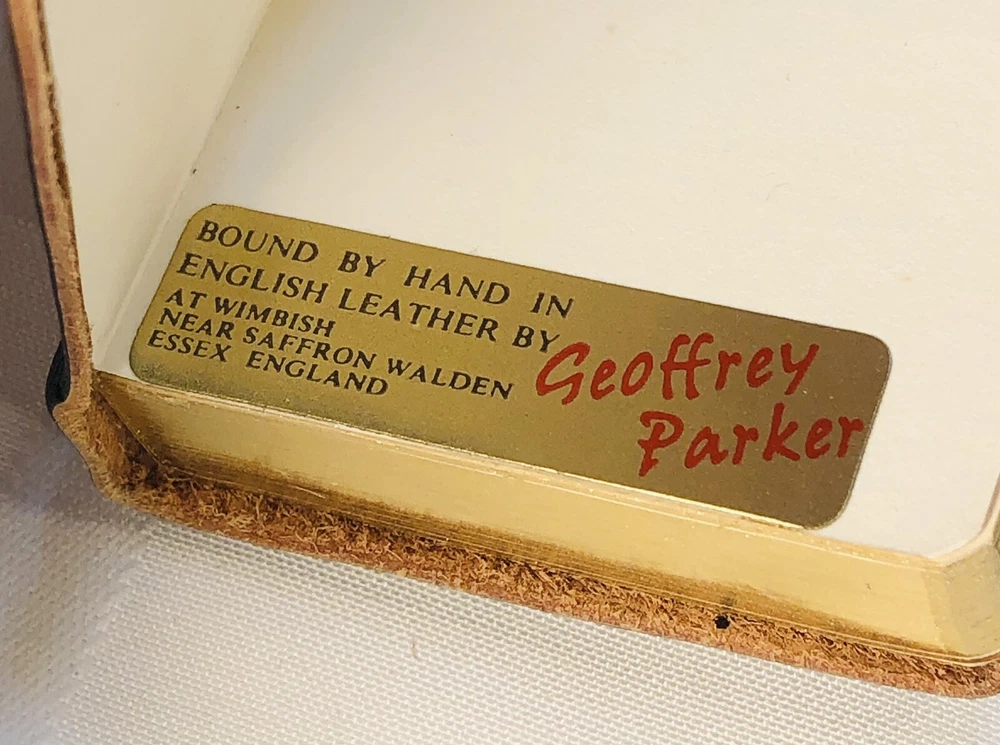 Vintage 1964 Geoffrey Parker Burgess & Bowes midget dictionary set in slip case. Includes French, Italian, Spanish & German dictionaries - with gilt page edges All were bound by hand in English leather (as per gold Geoffrey Parker sticker in the front of each book) German & Spanish volumes are dated 1964 on title page. Italian & French are not dated. Each dictionary measures 2 1/4" x 3 1/4" x 1/2". Slip case is marked "Geoffrey Parker Hand Made in England" on the back.
