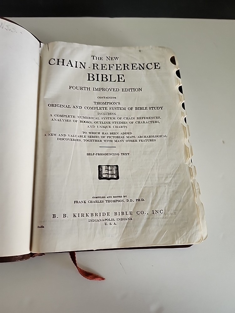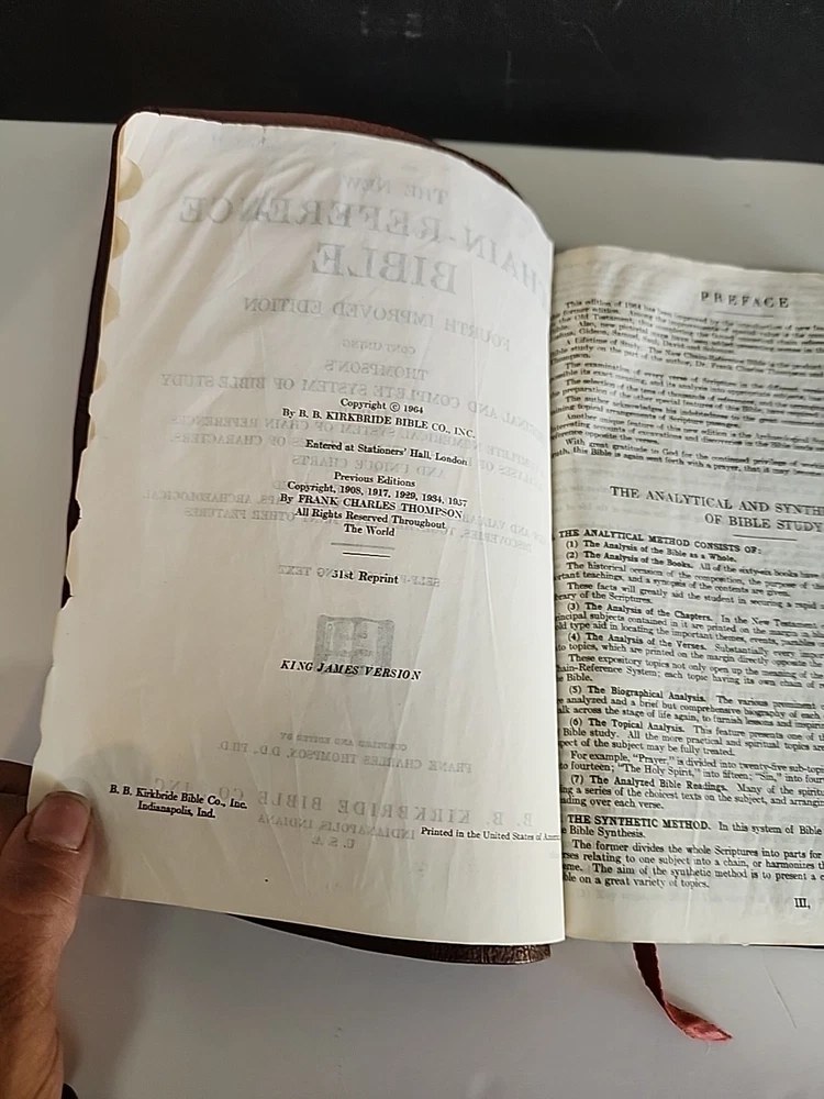 This is a rare and valuable find for collectors and enthusiasts of antique bibles. The 1964 The New Chain-Reference Bible, 4th Improved Edition by Frank Charles T. is a beautiful leather-bound copy that is sure to impress. Published by B.B. Kirkbride Bible Co., Inc, this bible is a treasure trove of reference material on a variety of topics. The book is written in English and is in excellent condition, making it a great addition to any collection. With its intricate design and attention to detail, this bible is a true work of art. Don't miss your chance to own this unique piece of history.