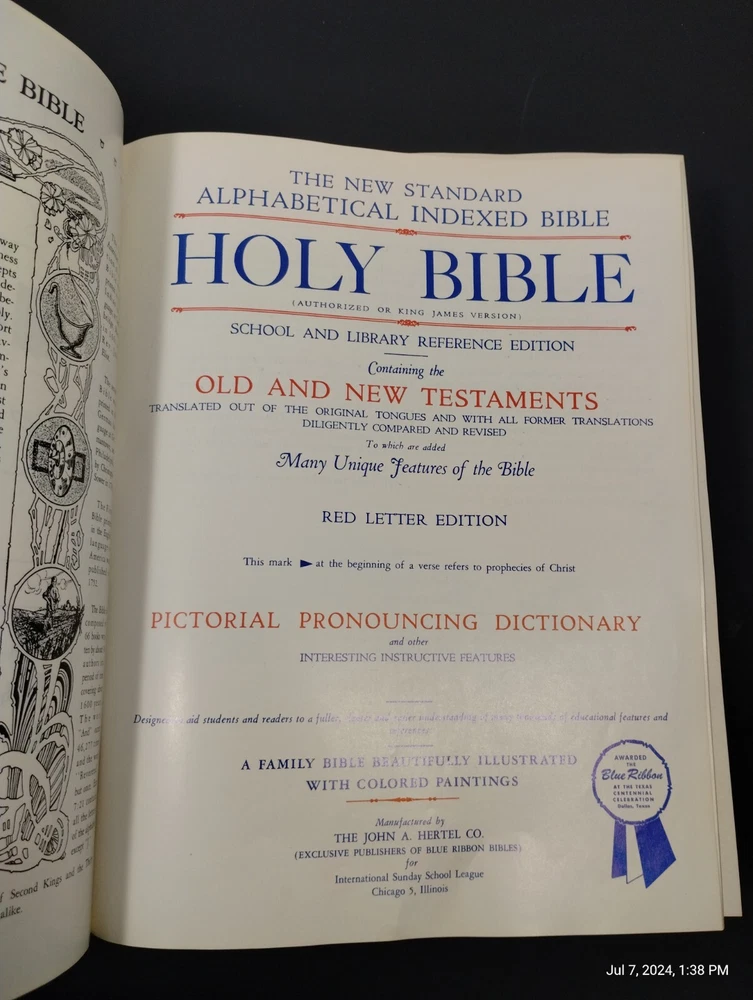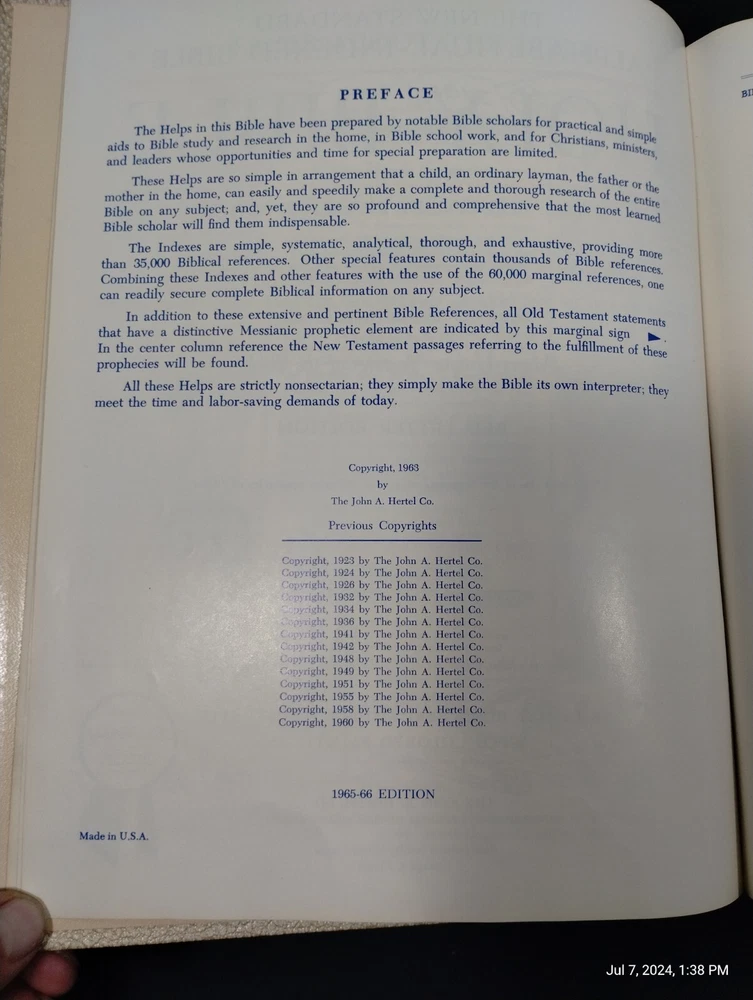 This 1965 Holy Bible Standard Reference Bible Blue Ribbon Edition by Hertel is a must-have for any Bible enthusiast. This hardcover book is written in English and contains the complete Bible text. It is a reference book that provides a comprehensive understanding of the Bible. The book was published and authored by Hertel. It covers various topics related to the Bible. This edition is a valuable addition to any book collection and is perfect for those who want to deepen their knowledge of the Bible.