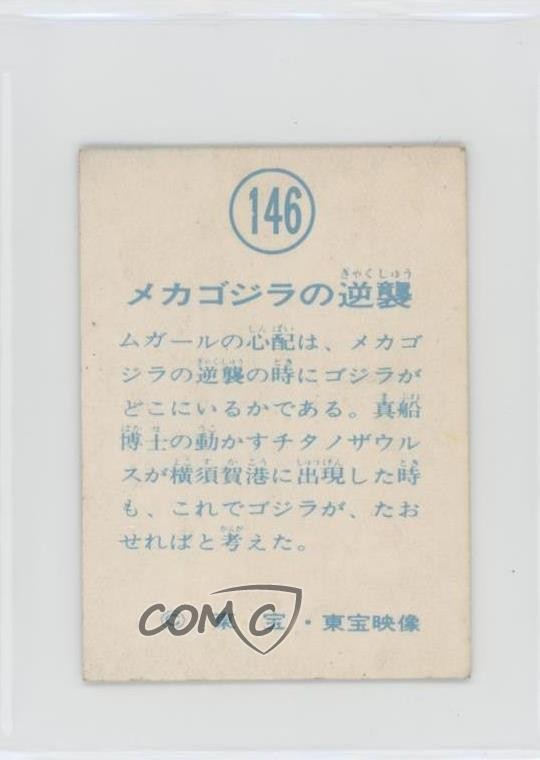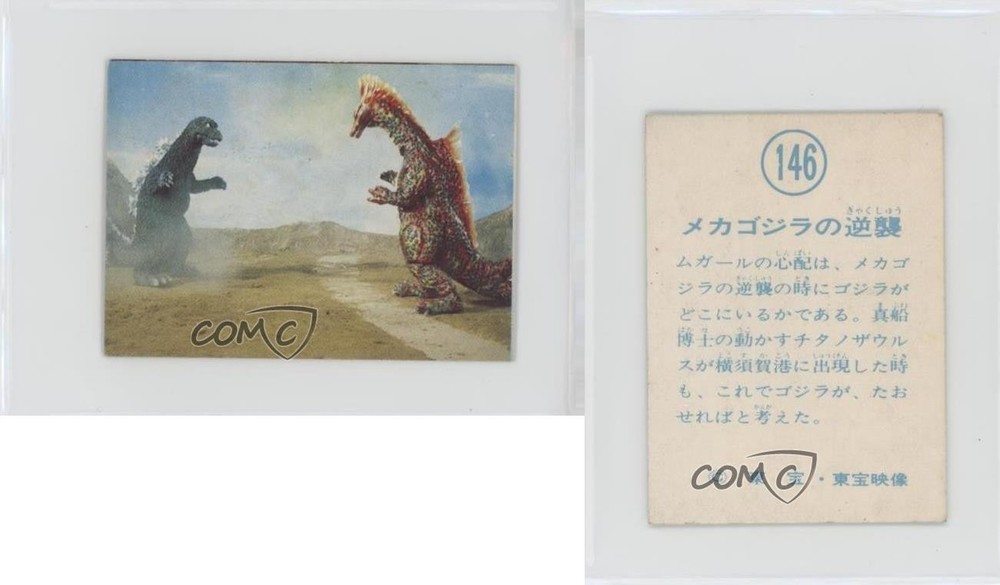 1966 Yamakatsu Godzilla Invasion of Astro-Monster - [Base] #146 Godzilla COMC Item: 248621044 - Non-Sports Card - Featuring Godzilla Search for more: 1966 Yamakatsu Godzilla Invasion of Astro-Monster Search for more: 1966 Yamakatsu Godzilla Invasion of Astro-Monster - [Base] View all of our Listings Auctions Buy It Now About Us Located in the beautiful Pacific Northwest, COMC (Check Out My Cards) is the world's largest consignment service for trading card singles. More than 10,000 people have used our consignment service to list over 50 million trading cards. Find out how we can help you consign your items on eBay by contacting us through eBay messaging. COMC -- "The Safe & Easy Way to Buy & Sell" Raw Condition for Modern Cards Unless otherwise noted, raw modern cards are listed in Near Mint-Mint condition or better. A NM-MT card appears to be Mint at first glance, but upon closer inspection, may exhibit some of the following: minor print defects (e.g. roller marks, print line, dimple), minor scratches, slight edge wear, and slight corner wear. Centering is clearly visible in the images provided and does not factor into our condition assessment. Raw Condition for Vintage Cards Unless otherwise noted, raw vintage cards are listed in Excellent condition or better. An EX card may exhibit some of the following: minor rounding of corners, surface wear, print defects, light scratches, and slight edge wear/chipping. Centering is clearly visible in the images provided and does not factor into our condition assessment. Domestic Shipping Combined shipping for multiple items is available. To receive combined shipping, please ensure all desired items are in your eBay shopping cart before proceeding to checkout. eBay limits orders to 40 items per order. We automatically combine multiple orders placed on the same day. If you place multiple orders on the same day, please contact us to request a refund of applicable shipping costs. Signature confirmation may be required on invoices over $400. All cards are protected and shipped securely. International Shipping COMC offers eBay's International Shipping (EIS) for international orders under $2,500* (see country exceptions below). All duties and import fees are paid at checkout; in the rare event that there are additional import fees upon delivery, these are borne by the buyer. EIS packages route through a shipping hub in Erlanger, KY before shipping to their final destination. Please note that EIS does not allow for combined shipments. The shipping rates are determined by eBay and cannot be adjusted. *Maximum sale price exceptions: Colombia, Kuwait ($2,000); Taiwan ($1,539); Chile, Costa Rica, Guatemala, Honduras, Trinidad and Tobago ($1,000); Antigua and Barbuda, Aruba, Belize, Dominica, Grenada, Philippines, Saint Kitts and Nevis, Saint Lucia, Montserrat, Turks and Caicos Islands ($500); Dominican Republic, El Salvador ($200). Please request a shipping quote through eBay messaging for orders that exceed the maximum sale price supported by eBay's International Shipping. You will be responsible for all duties and import fees for international orders shipped outside the EIS. All cards are protected and shipped securely. Payment COMC does not accept offers on our cards through our eBay storefront. COMC utilizes eBay’s managed payments system. If you are experiencing difficulties making a payment, please contact eBay for assistance. Return Policy Returns are only accepted on the rare occasion the item is not as described. If you are making a return, please initiate the return process through eBay so a mailing label can be provided for you. Prior to listing, our expert team carefully assessed this item to represent it accurately. Please review the description and high-definition images prior to purchasing to ensure this item meets your satisfaction. We welcome you to contact us if you have further questions about this item. Trust and Integrity COMC carefully assesses each item consigned to us to prevent fraudulent items from entering the marketplace. If you believe an item offered on COMC may be fraudulent, please contact us with details so we can investigate the issue. Items we determine are outside our supported items policy may be removed. Last Modified: 6/13/2025 11:58:06 AM PDT