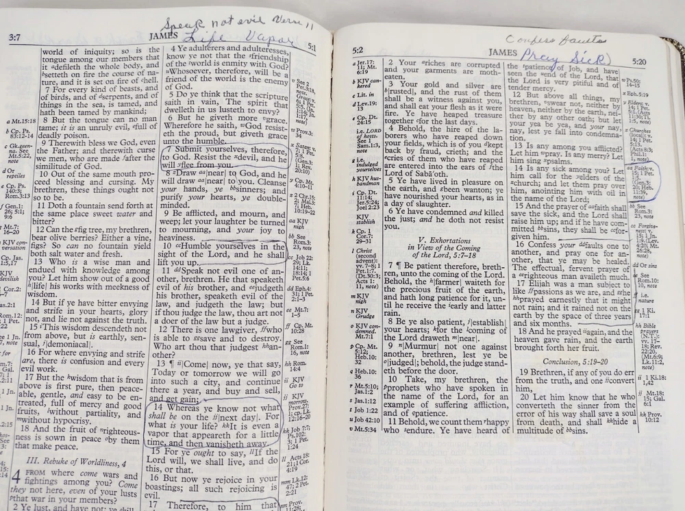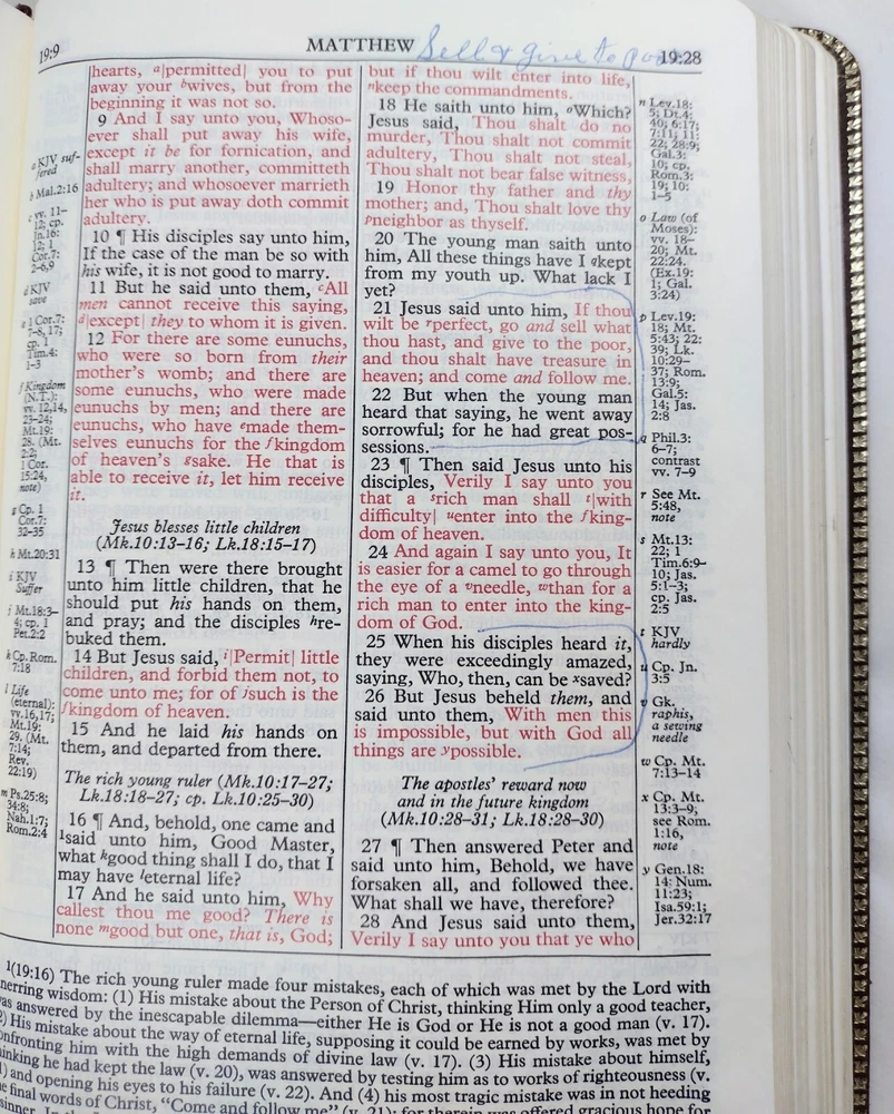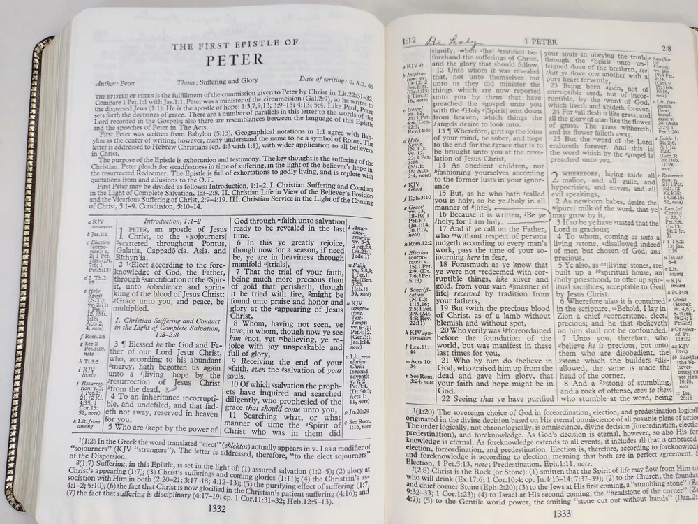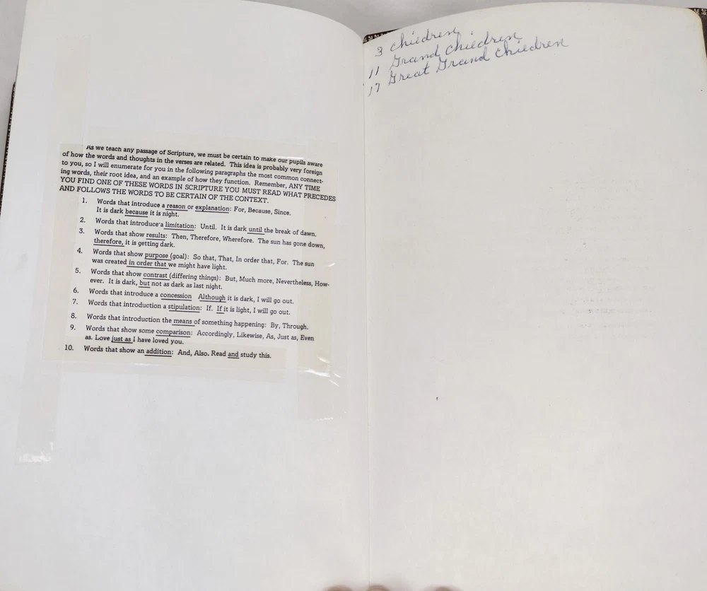 1967 Holy Bible Red Letter Concordance New Scofield Reference Ed Oxford Leather. This Bible is pre-owned. It has some writing here and there, papers of reference taped one in front one in back, bending, yellowing, embossed personal name on front, and wear. It has 1392 pages of Scripture and index to annotations, 192 pages of concordance and map index, and 9 map pages. It measures approximately 1 1/2 x 6 x 9". You get the 3 bookmarks that were in it. Pictures are part of the description. Thanks for looking!
