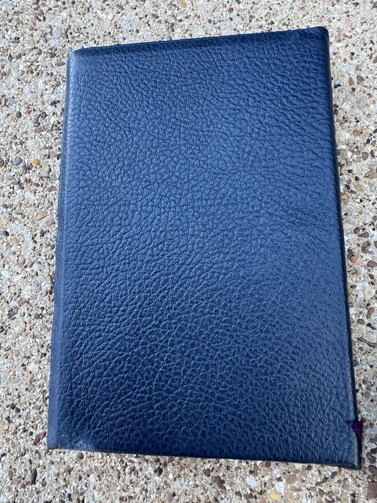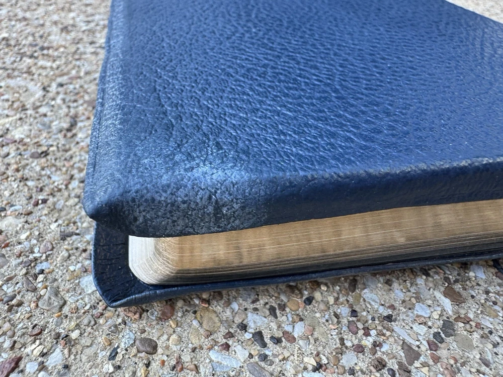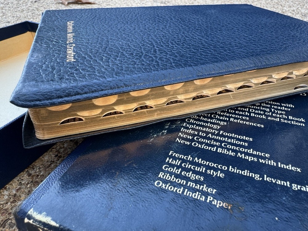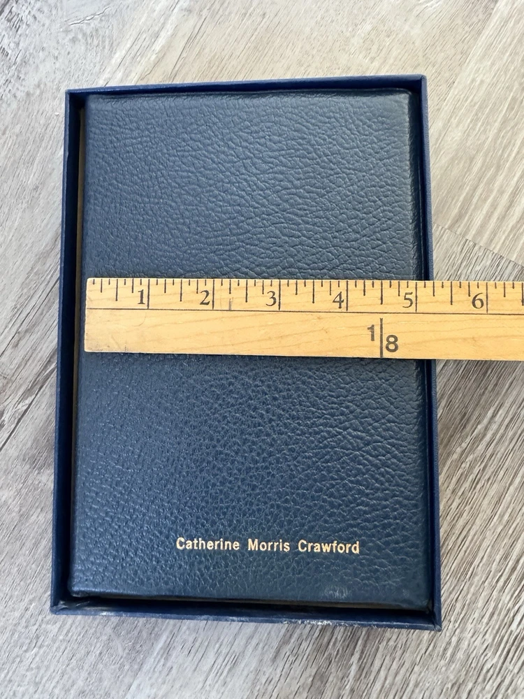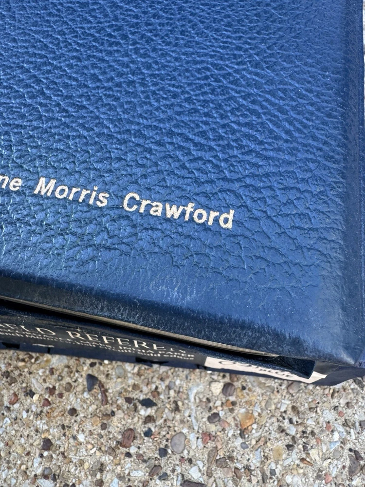Has name engraved on front cover In excellent like new condition apart from the inside has approximately 50 or so pages with highlights as shown in the photos Some with heavy highlights and some with much less Examples shown No odors This Bible is the indexed version and has a beautiful blue color Measurements in photos Ships bubble wrapped in box BIBLCBX