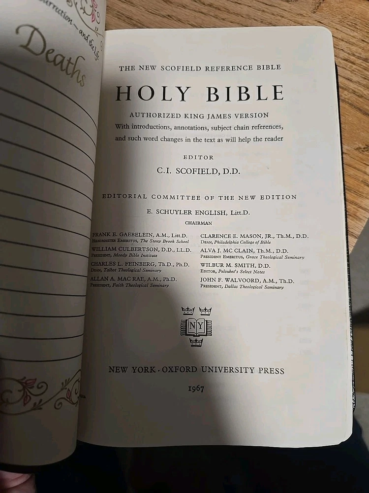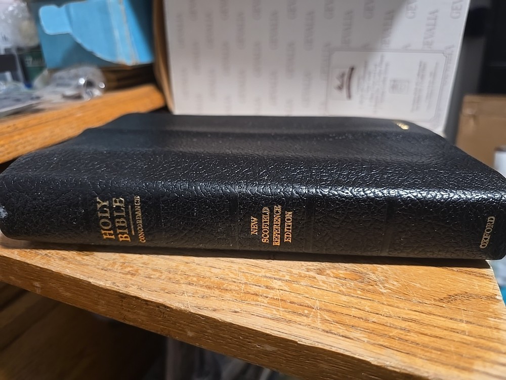 The product is a vintage 1967 Oxford Holy Bible Concordance in the New Scofield Reference Edition, bound in black leather. It is a classic and beautifully crafted Bible with a timeless design and valuable reference features. The Bible is in English and authored by Oxford, making it a trusted and scholarly edition for all those seeking to delve deeper into the teachings and stories of the Holy Bible.