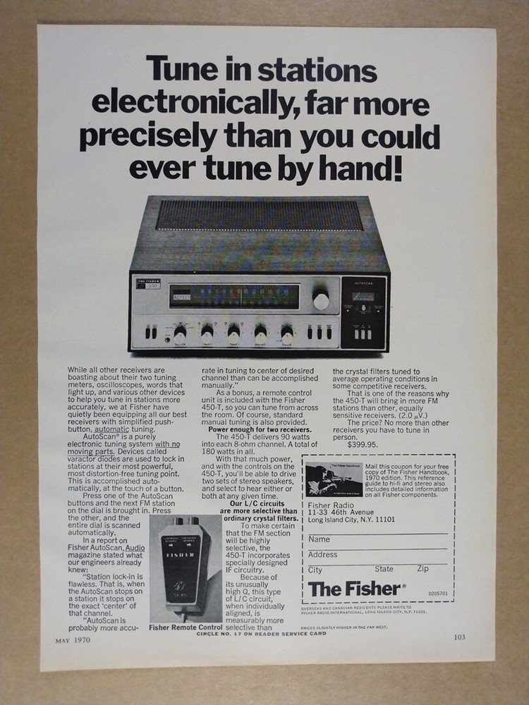 1970 Fisher 450T Vintage Stereo Receiver Retro Print Ad