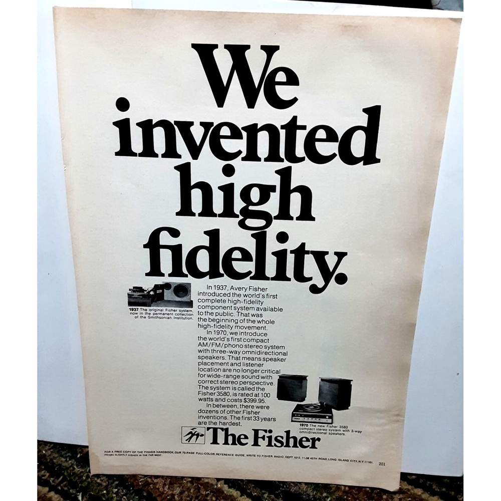 1970 Fisher original vintage print ad. Original ad cut from a 1970 magazine. Good to better vintage condition. Some light "water marking" still displays nicely. Would make a great addition to your vintage collection. Comes with plastic cover and backing board. "I herein make no claims to the publishing rights or copyrights of these original works. As such, the works are sold as vintage Magazine ads under the Fair Use Doctrine." Condition: Pre-Owned Good to better vintage condition