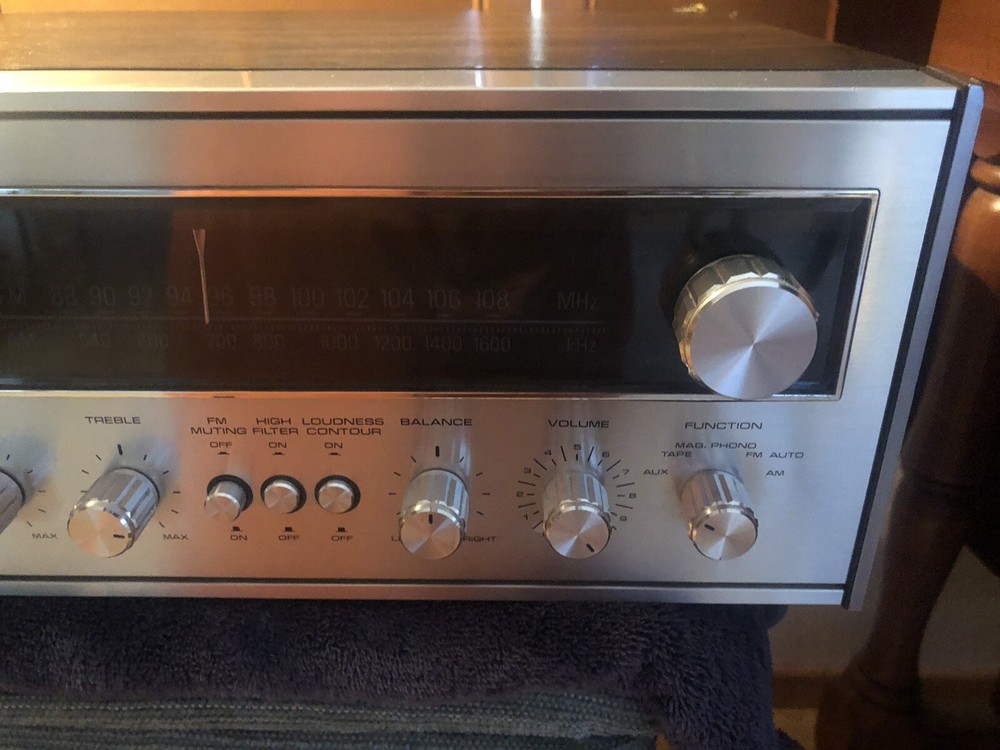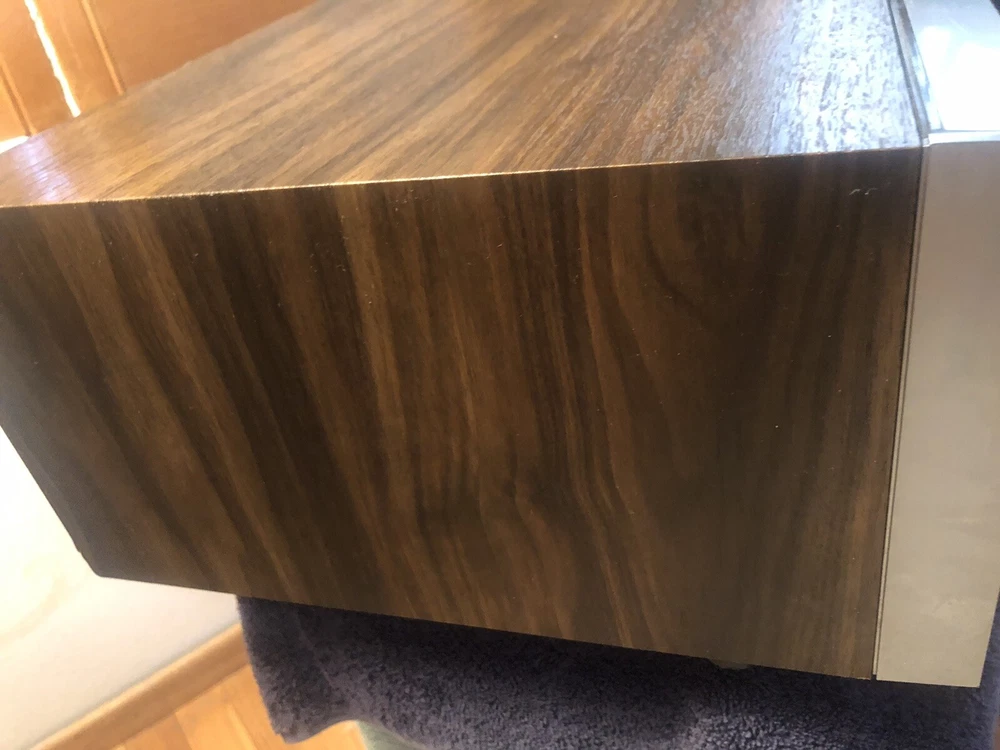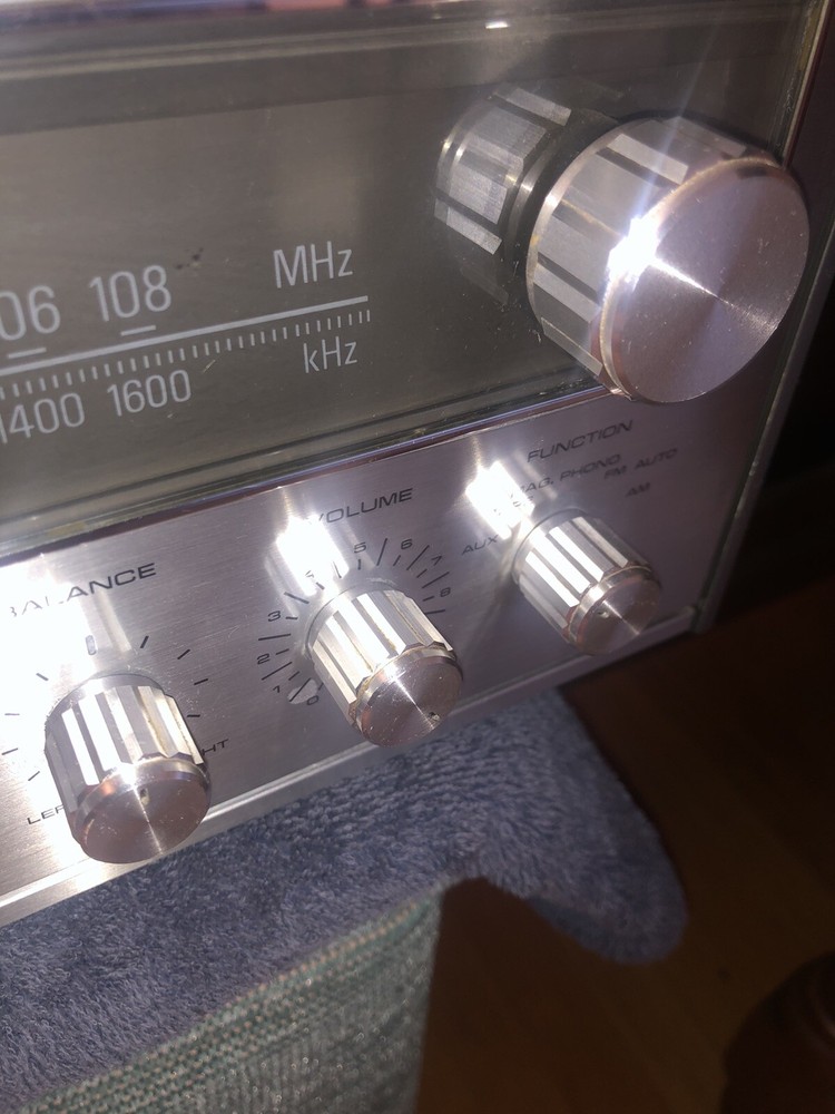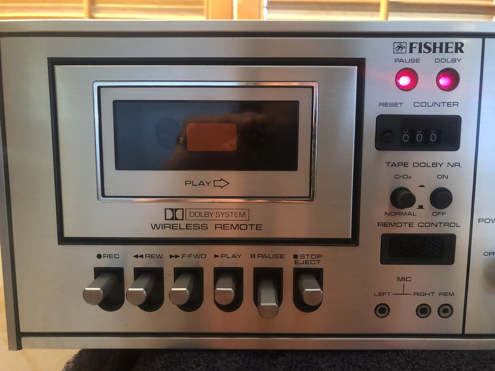 1970’s Fisher Stereo Amp Receiver with Dolby Tape Deck. Body is in very good condition and there are No scratches, dents or oxidization on face plate. I am the second owner. Brought it out of storage to sell. After checking out functions I find the following issues need internal cleaning or repair to be back in perfect order: Volume button has static when turning. Radio Light needs new bulb. Tape deck: play and record buttons dont press down. Rew/ FF dosnt move tape. Play dosnt move tape. Eject dosnt open door, but door opens with a gentle pry. Cosmetic issues: Some very light scratches on top facing strip as shown in photos. One small scuff to top right corner of metal plate as photo’d. One small nick on top wood surface as shown in photo. All other buttons and functions work. And the unit looks excellent sitting in the room and nearly perfect esthetically. Rear vents show the inside is clean without dust issues. All flaws to unit listed here in description, and shown in photos.