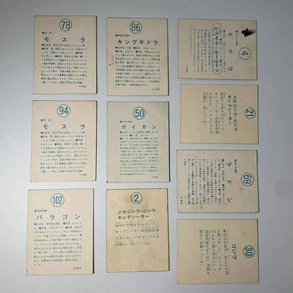 1970’s vintage Trading cards Godzilla japanese King of the monsters cards set.