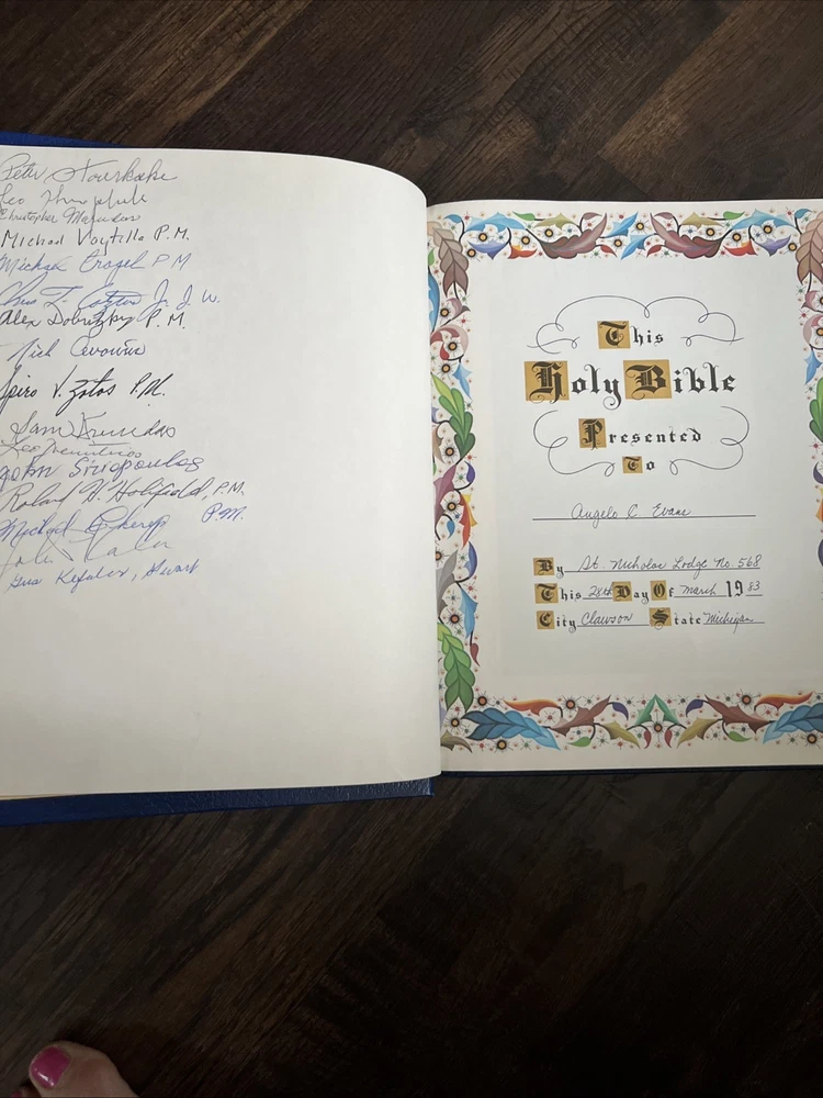 1971 Large Masonic Holy Bible KJV Master Reference Edition Red Letter Heirloom. Large books, 12x9x3” and weighs almost 6lbs. Pre owned cover and binding solid but the first few pages have been written...