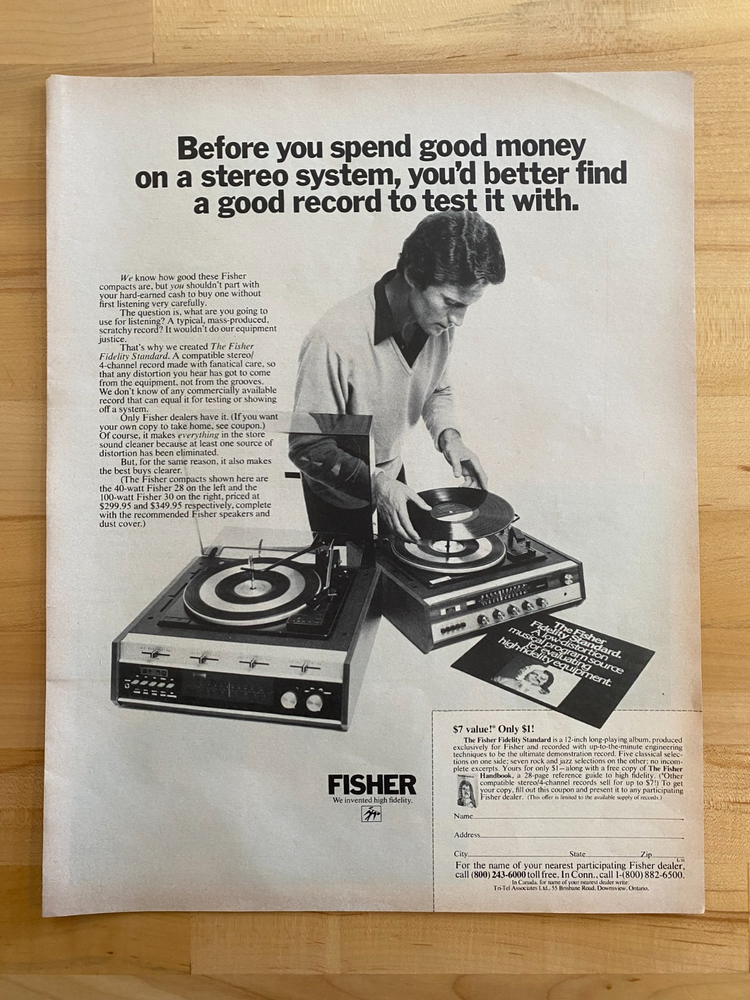 1972 Print Ad Fisher Record Player Stereo 10"x14" This would make, a great picture when framed for any garage, man cave, office, business, sports bar, game room, media room or shop. This is an ORIGINAL ad NOT A COPY OR A REPRINT. Perfect Gift for Birthday, Christmas, Father's Day or? A picture of your FIRST car or truck or maybe your favorite ride! An original ad can help you sell a vehicle. Display an original ad at the CAR SHOW. Fond memories or wishful thinking. Fun pictures to bring smiles and happiness. Approximately 10"x14" each page NOTE: There may be some slight yellowing or wear due to age. Also, pages may have some slight curling on one edge (inside edge where the magazine was stapled together) that should lay flat when framed. 2 page ads may not line up exactly when put together due to glue in the binding, on some magazines, that has to be cut away. They can still be framed together or with a slight space between and look GREAT! We try to keep as much of the picture as possible! The photos in the listing of the ads are taken with an iphone so I do adjust the color of the photos ONLY to make them reflect, as closely as possible, the REAL picture so there are no surprises when you receive your ad. I want your repeat business! Please look closely at the pic. I only ship within the US 48 States. (unless arrangements are made for extra shipping costs) Shipped in acid free, archival safe sleeve with cardboard protection and marked DO NOT BEND on both sides I WILL COMBINE SHIPPING ON MULTIPLE ITEMS HOW TO GET COMBINED SHIPPING 1) Add all items you want to purchase from our store to your CART (DO NOT PURCHASE YET) 2) Go to your cart and click on "request total from seller" (above the item price) 3) Wait for our reply with your invoice total with combined shipping If buying from your phone these options may not be available. NOT TO WORRY, I will gladly refund any extra shipping costs you may have paid when buying more than one item. If you have a question or a concern with your purchase, please message and let me know. I would love the opportunity to help solve any issues you may have. I work hard to maintain a 100% positive feedback rating. Thank you so much Tim TAKE A LOOK AND FOLLOW US at our store for more automobilia. TAYLORCO